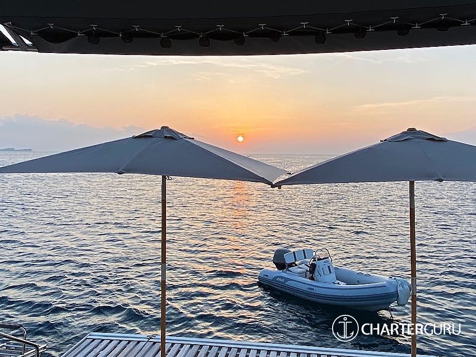 A stunning piece of art. She sails so smooth and is very classy. The owners thought of everything when designing this beautiful yacht. Sure you can go to shore but we loved being on the boat.