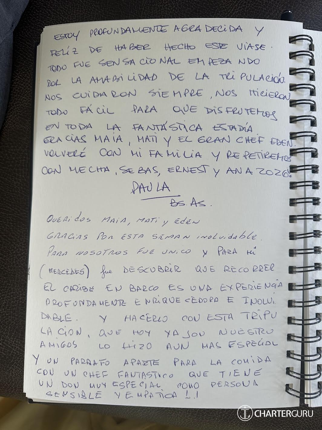 Thank you so much for helping us have the most amazing vacation that we will never forget. From Matias' knowledge to Maia's beautiful personality and talent, and our favorite chef Eden, with his amazing culinary skills!! Miguel and I loved our daily talks with you. May our paths cross again!