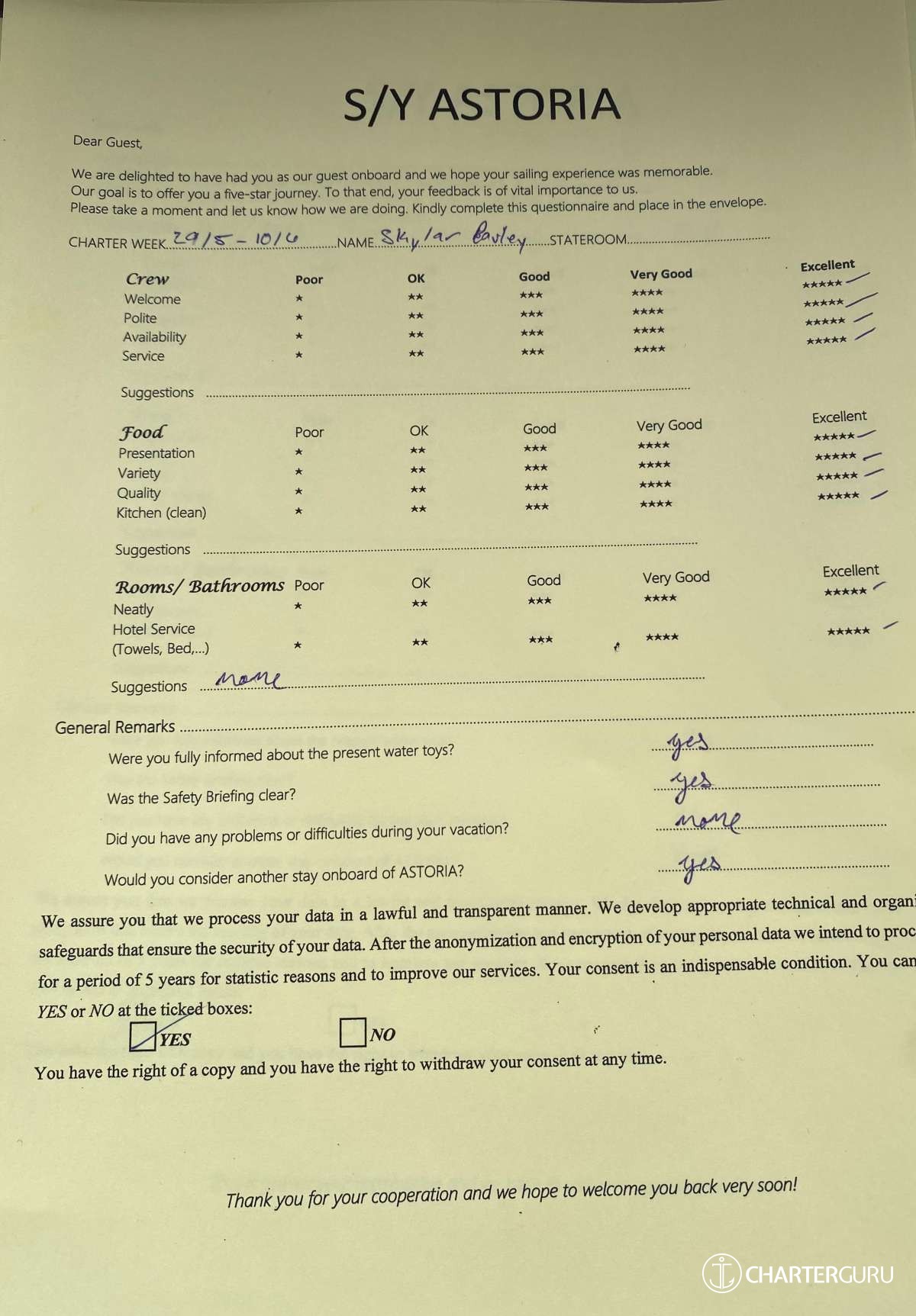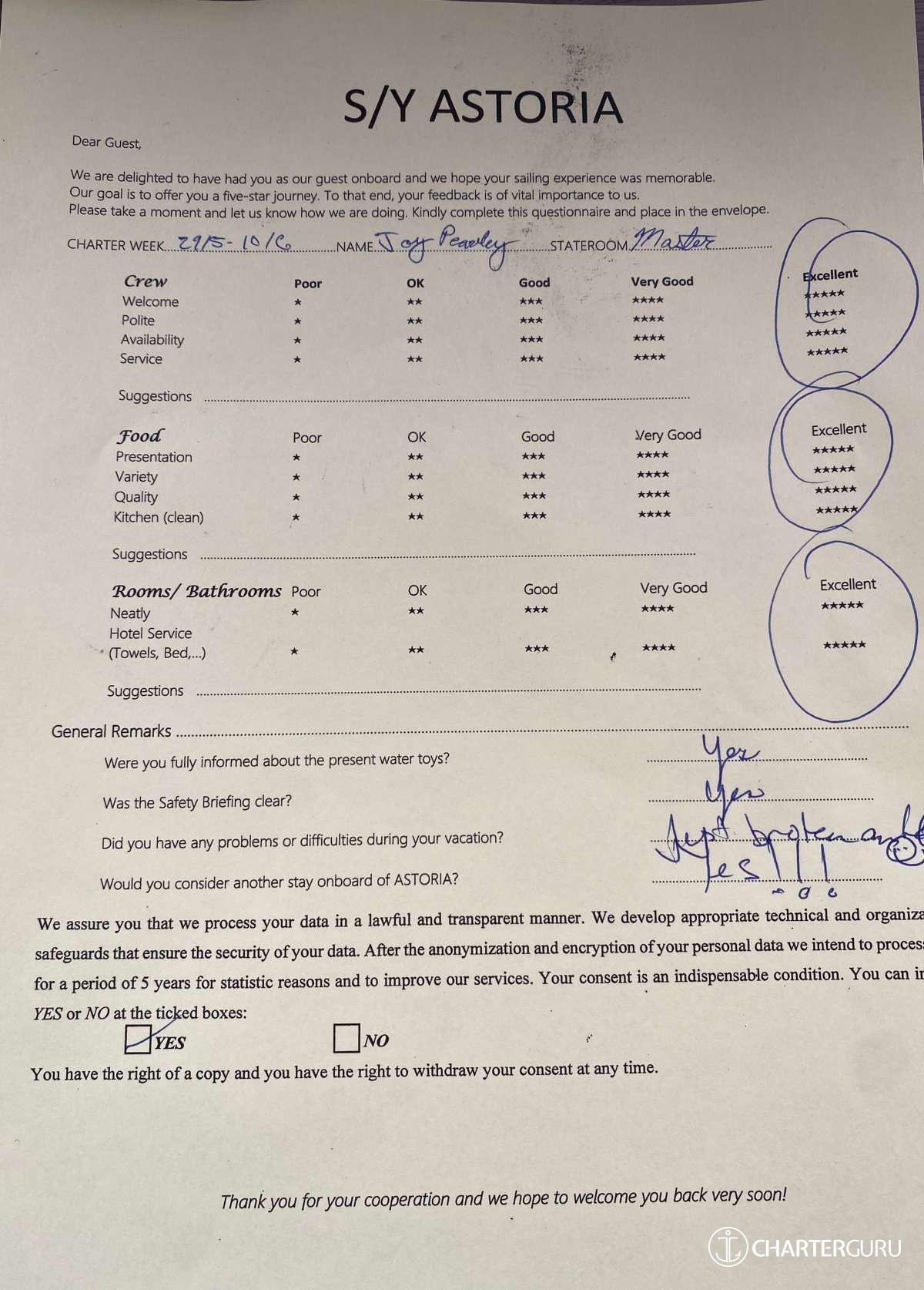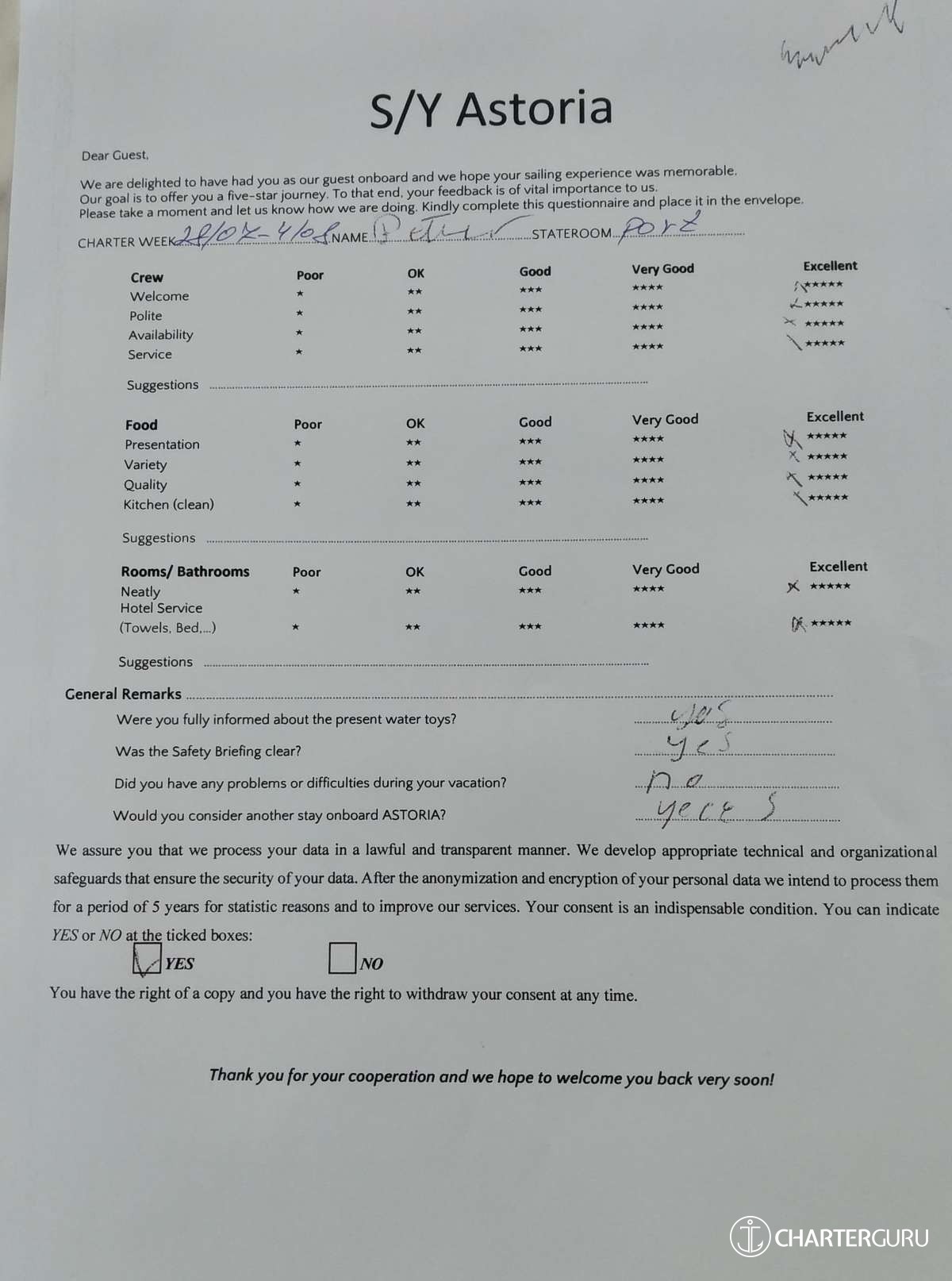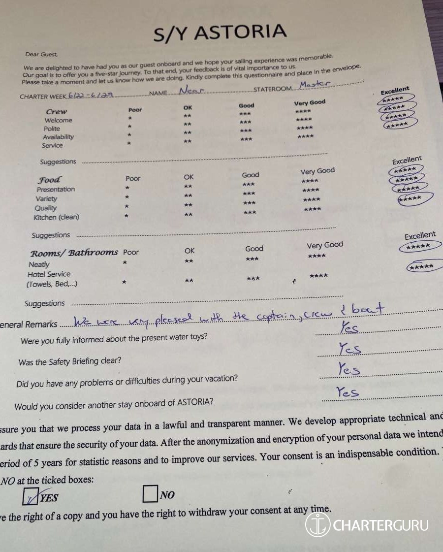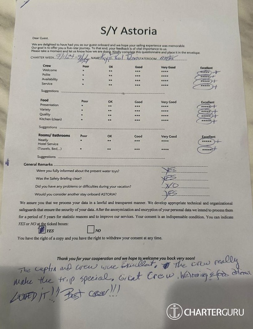 Whether enjoying a tranquil sail, a family celebration, or a sunset over crystal-clear waters, S/Y Astoria promises the perfect blend of adventure, elegance, and relaxation — a sailing experience unlike any other.