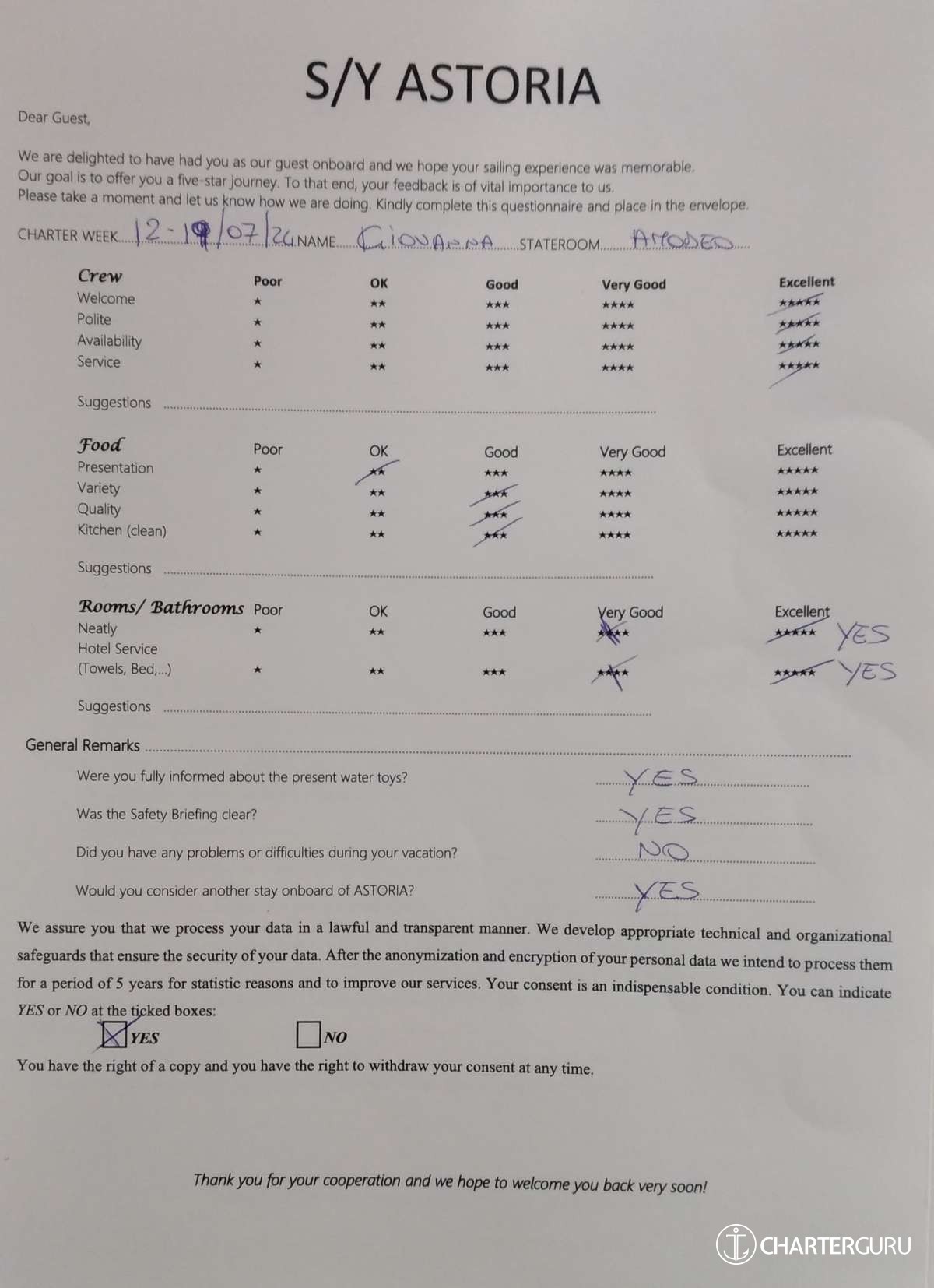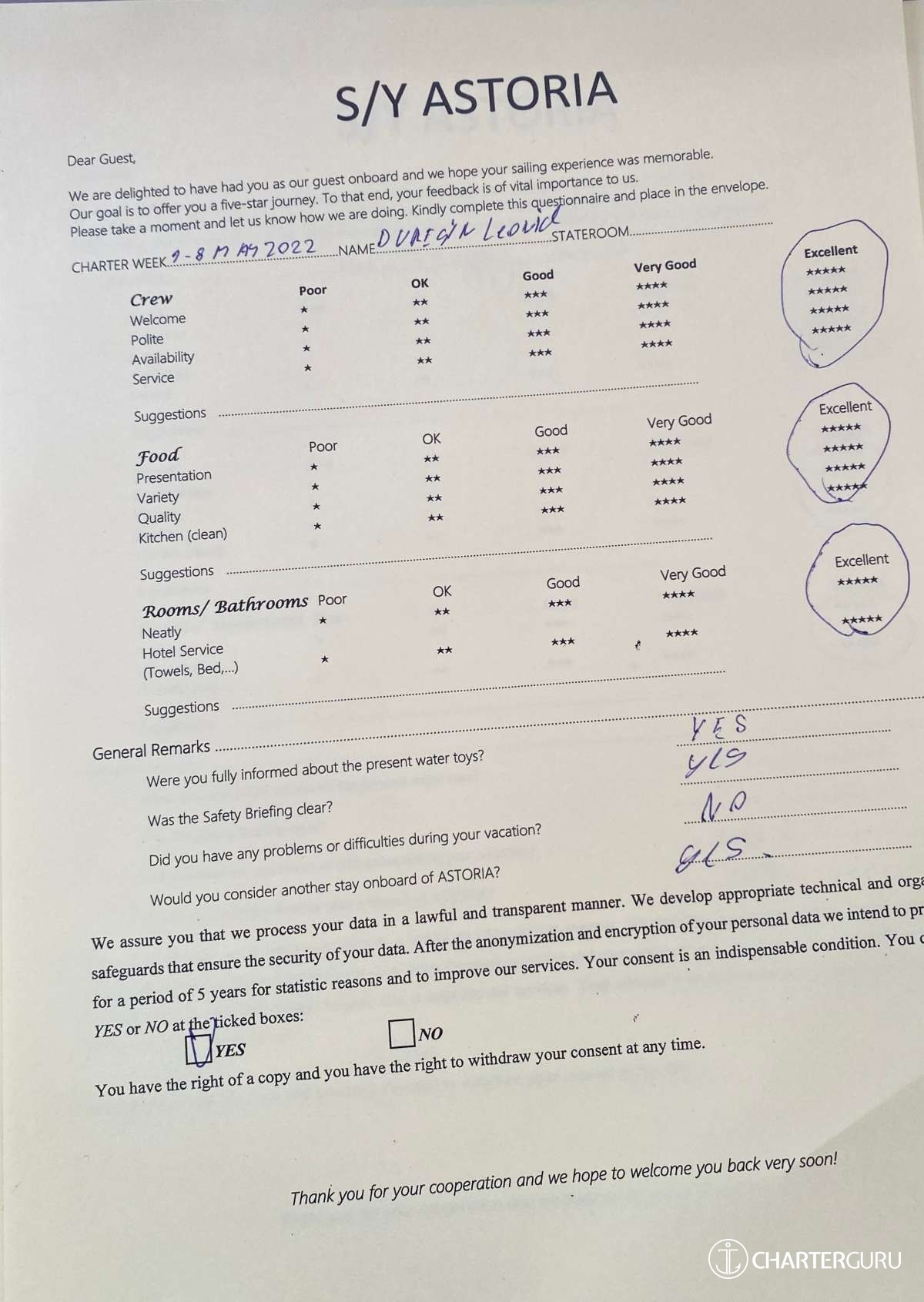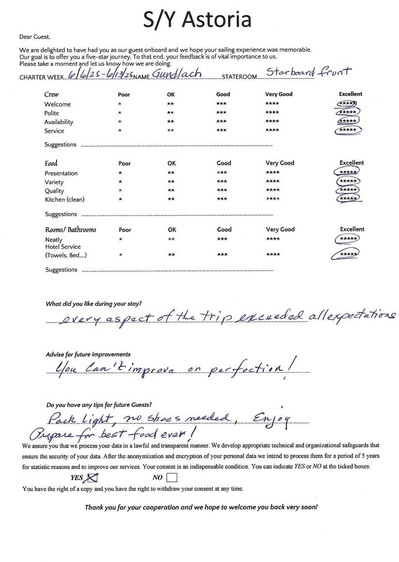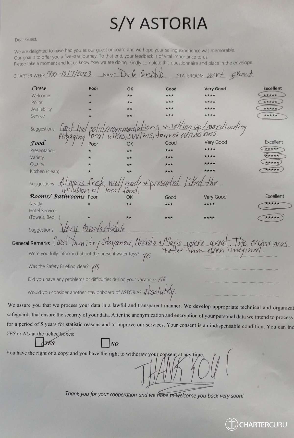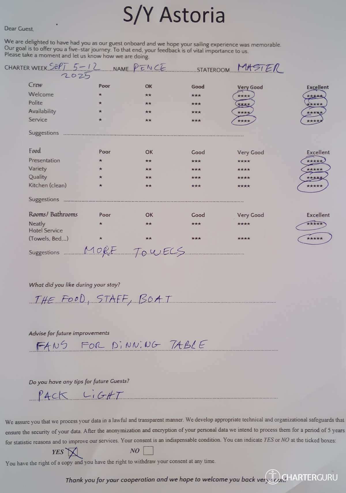 Whether enjoying a tranquil sail, a family celebration, or a sunset over crystal-clear waters, S/Y Astoria promises the perfect blend of adventure, elegance, and relaxation — a sailing experience unlike any other.