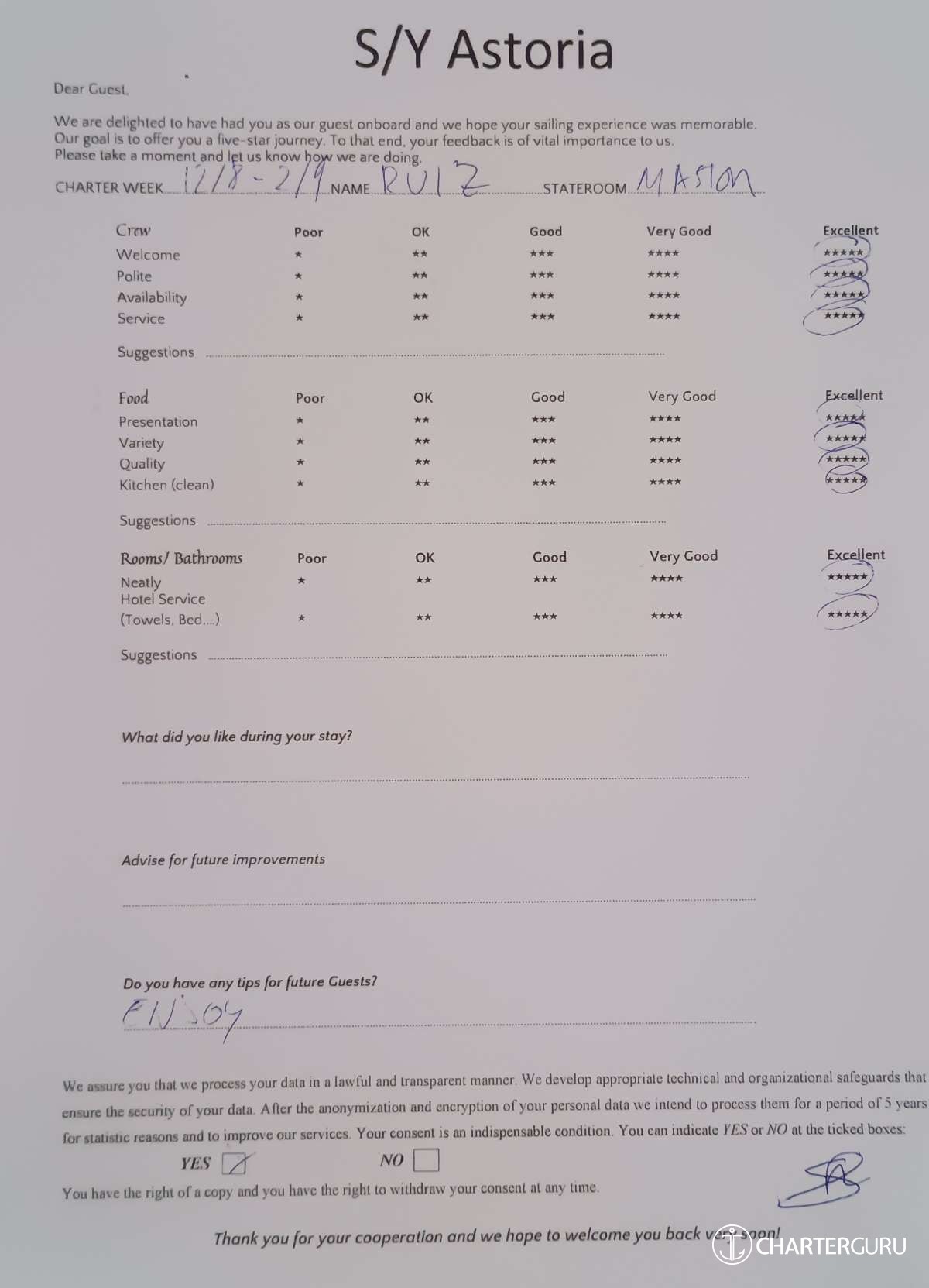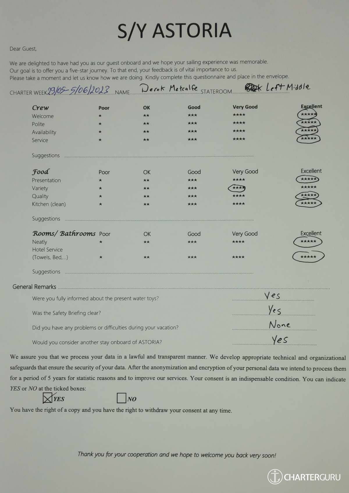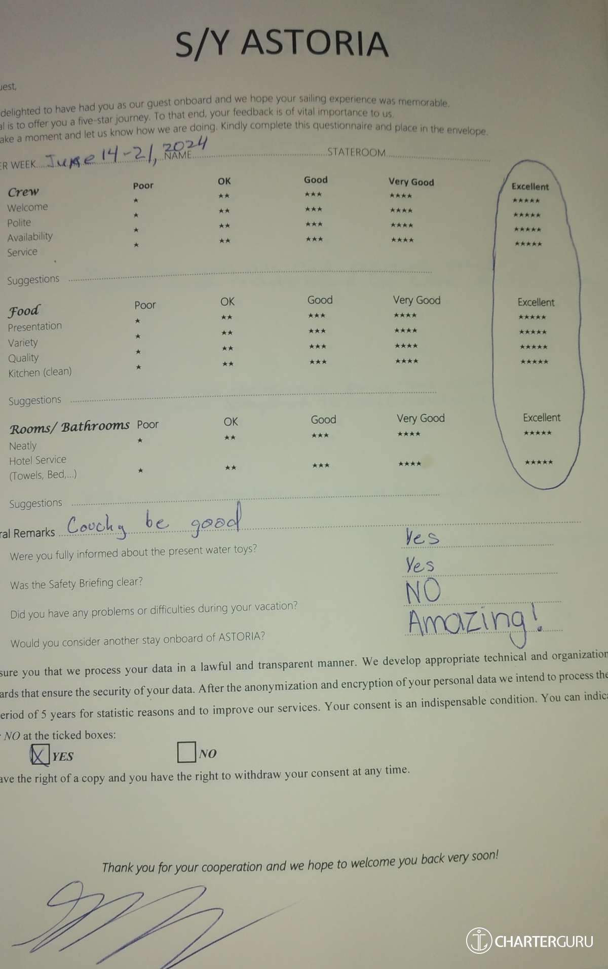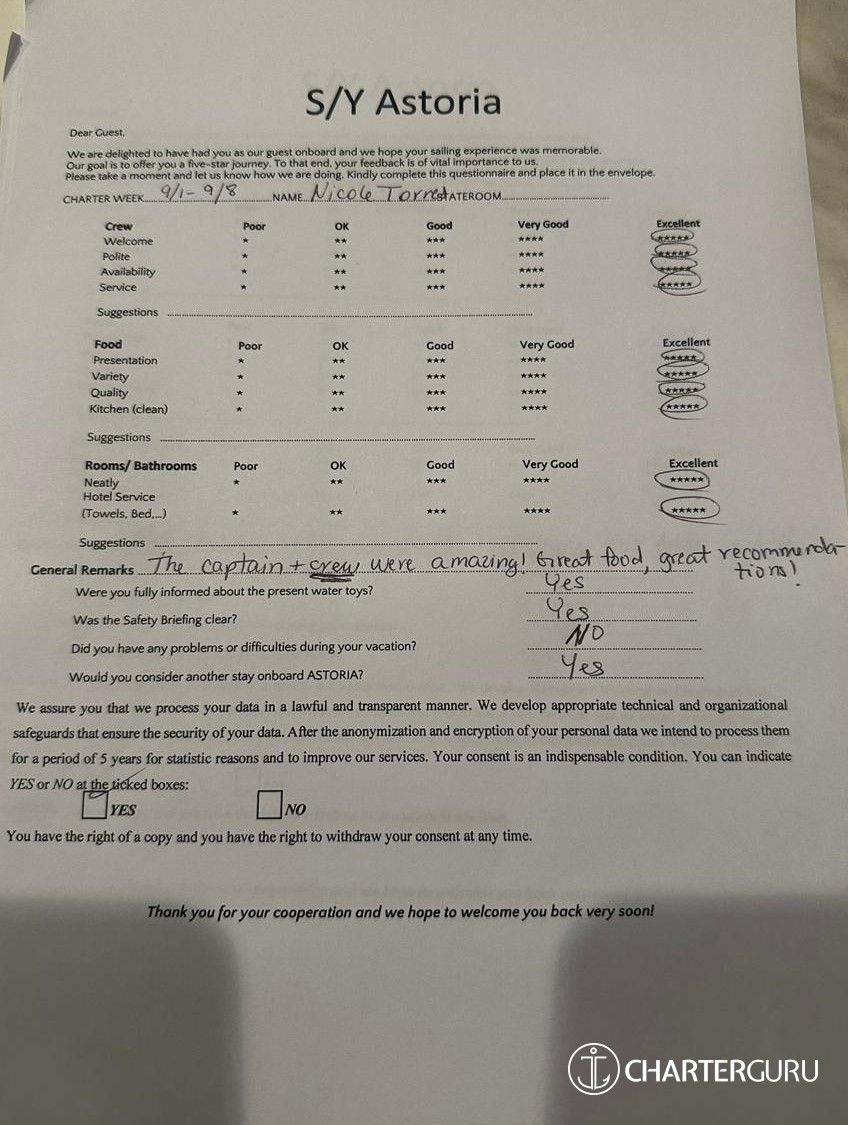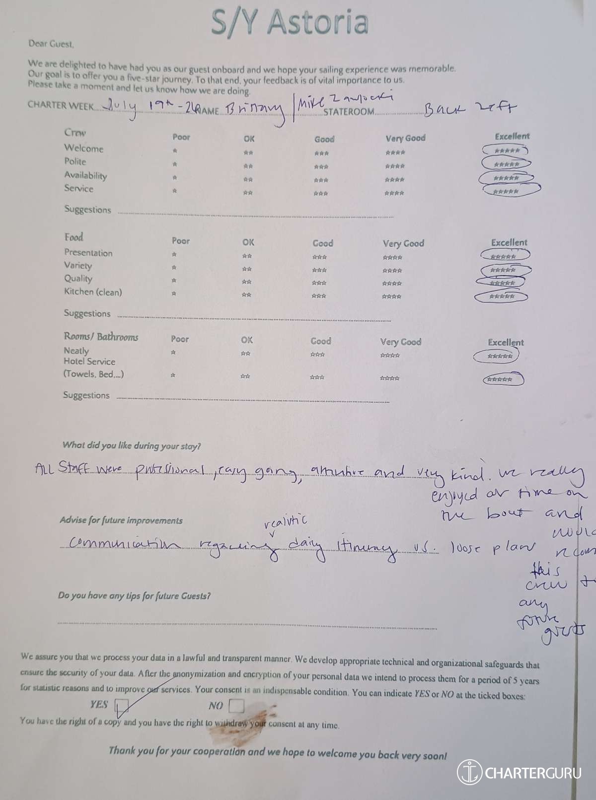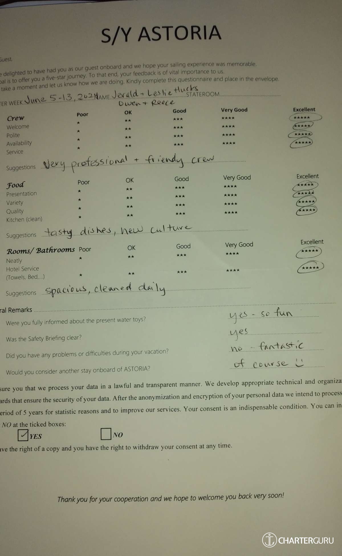Whether enjoying a tranquil sail, a family celebration, or a sunset over crystal-clear waters, S/Y Astoria promises the perfect blend of adventure, elegance, and relaxation — a sailing experience unlike any other.