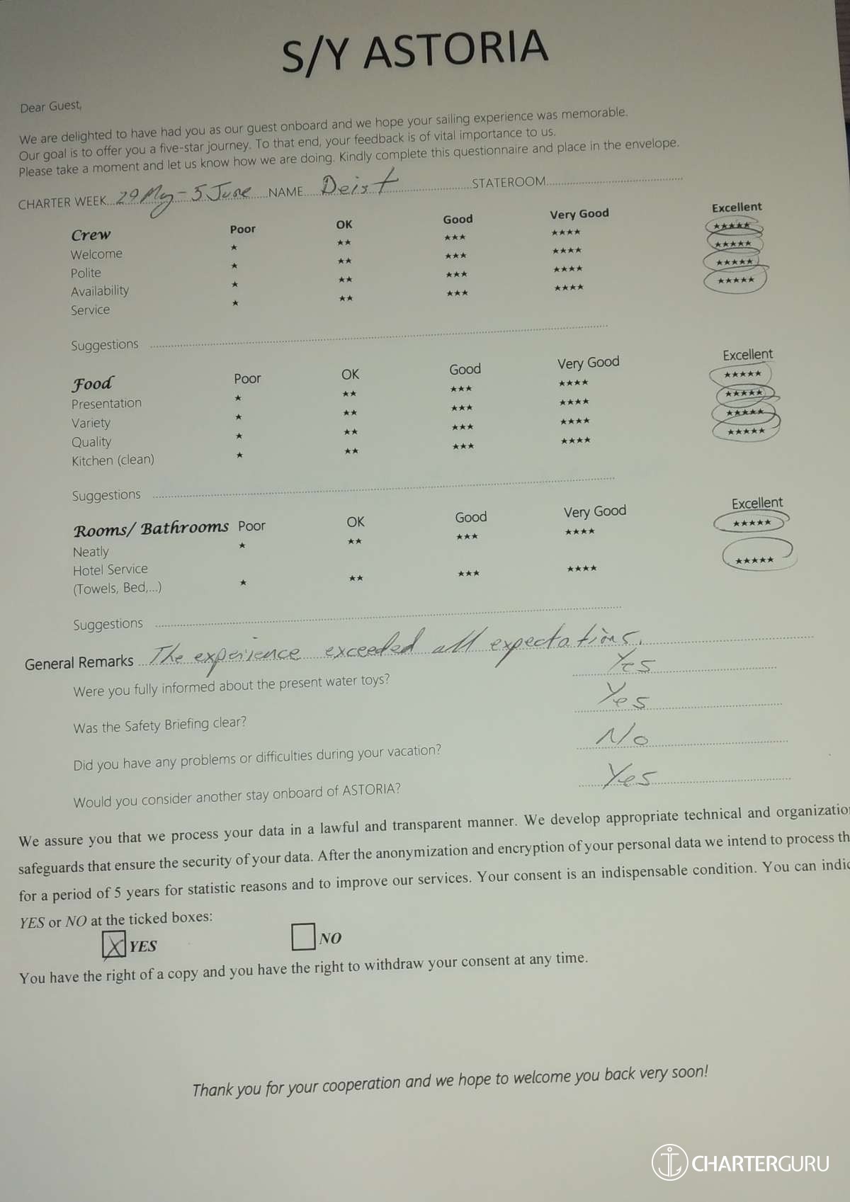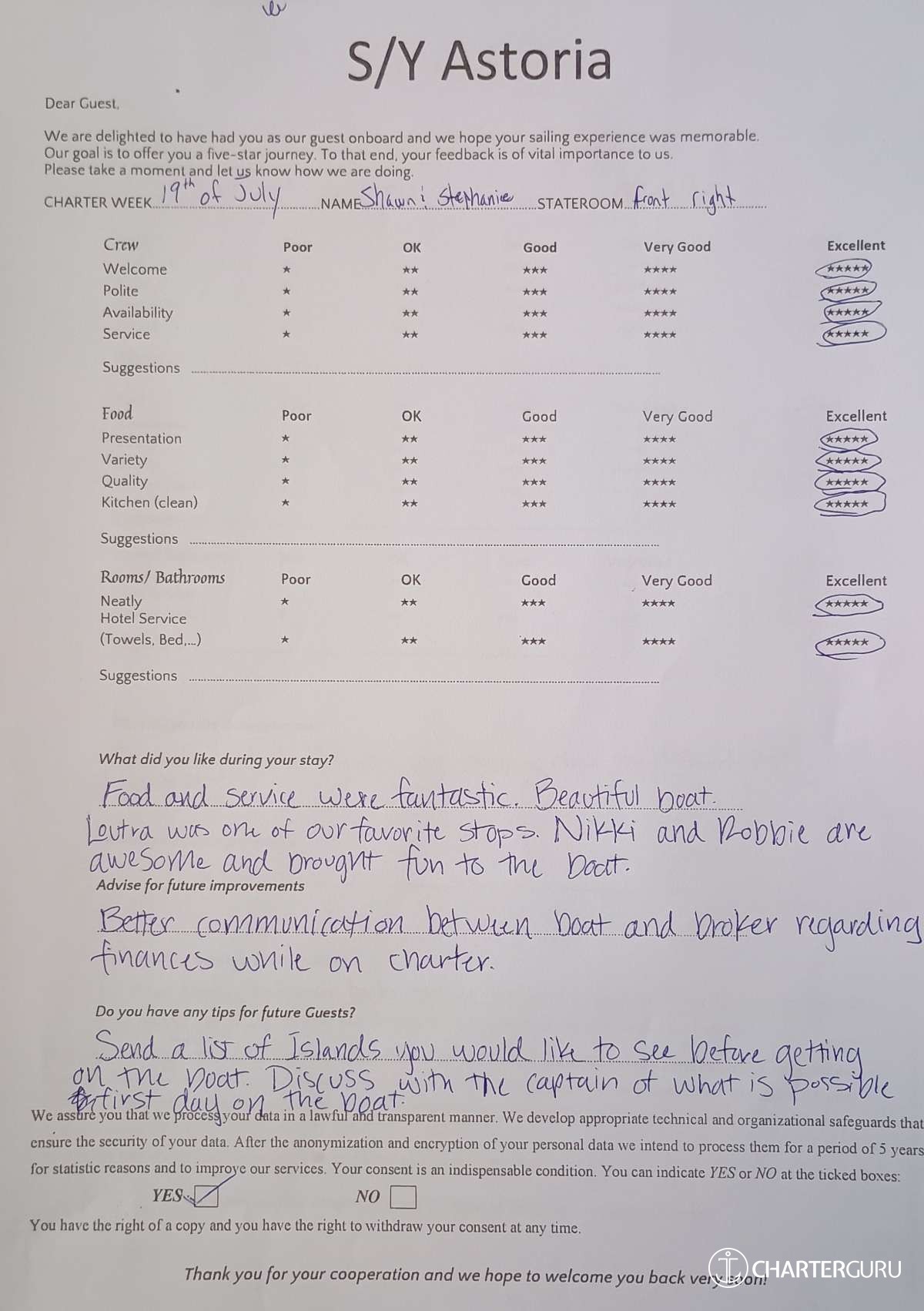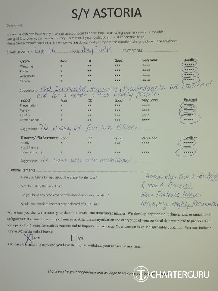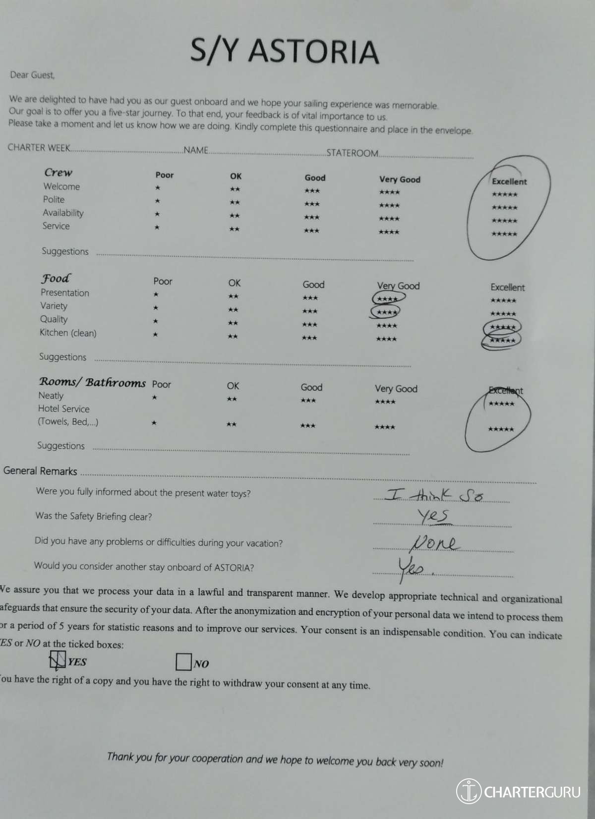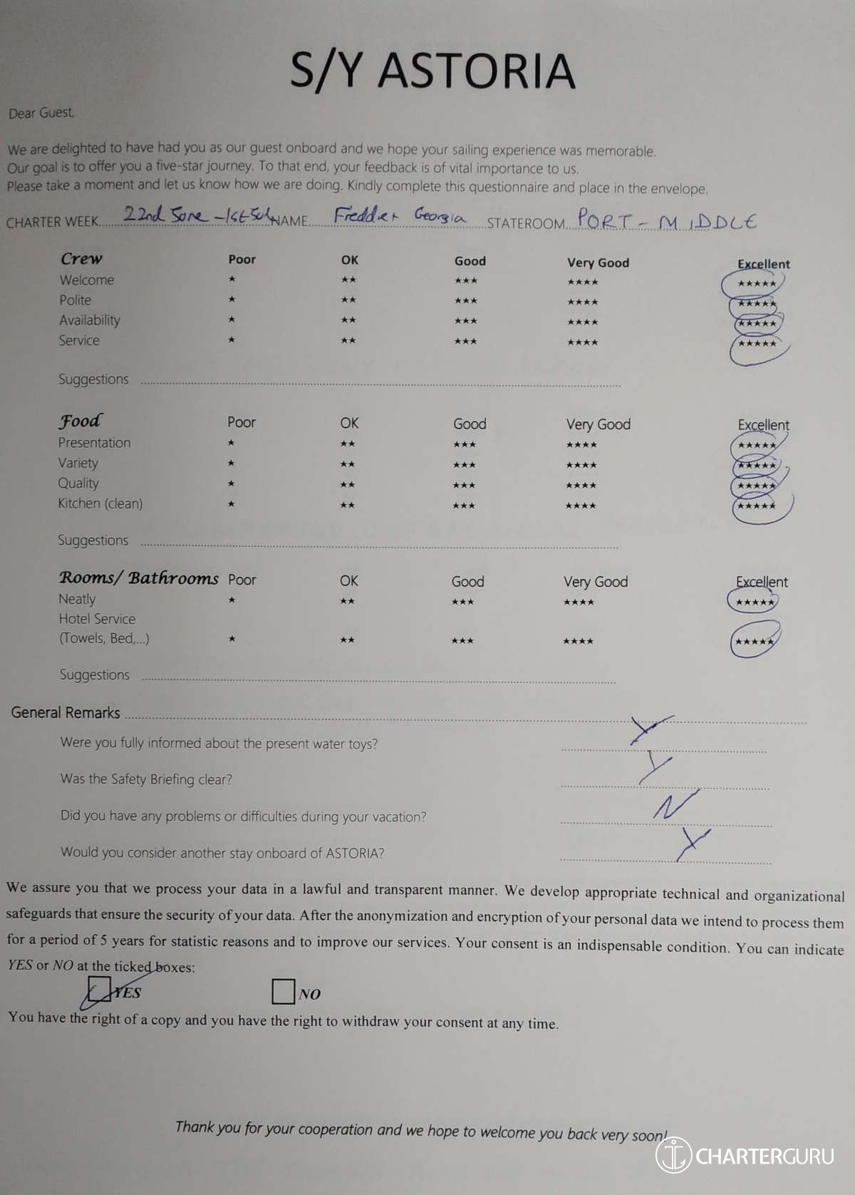 Whether enjoying a tranquil sail, a family celebration, or a sunset over crystal-clear waters, S/Y Astoria promises the perfect blend of adventure, elegance, and relaxation — a sailing experience unlike any other.
