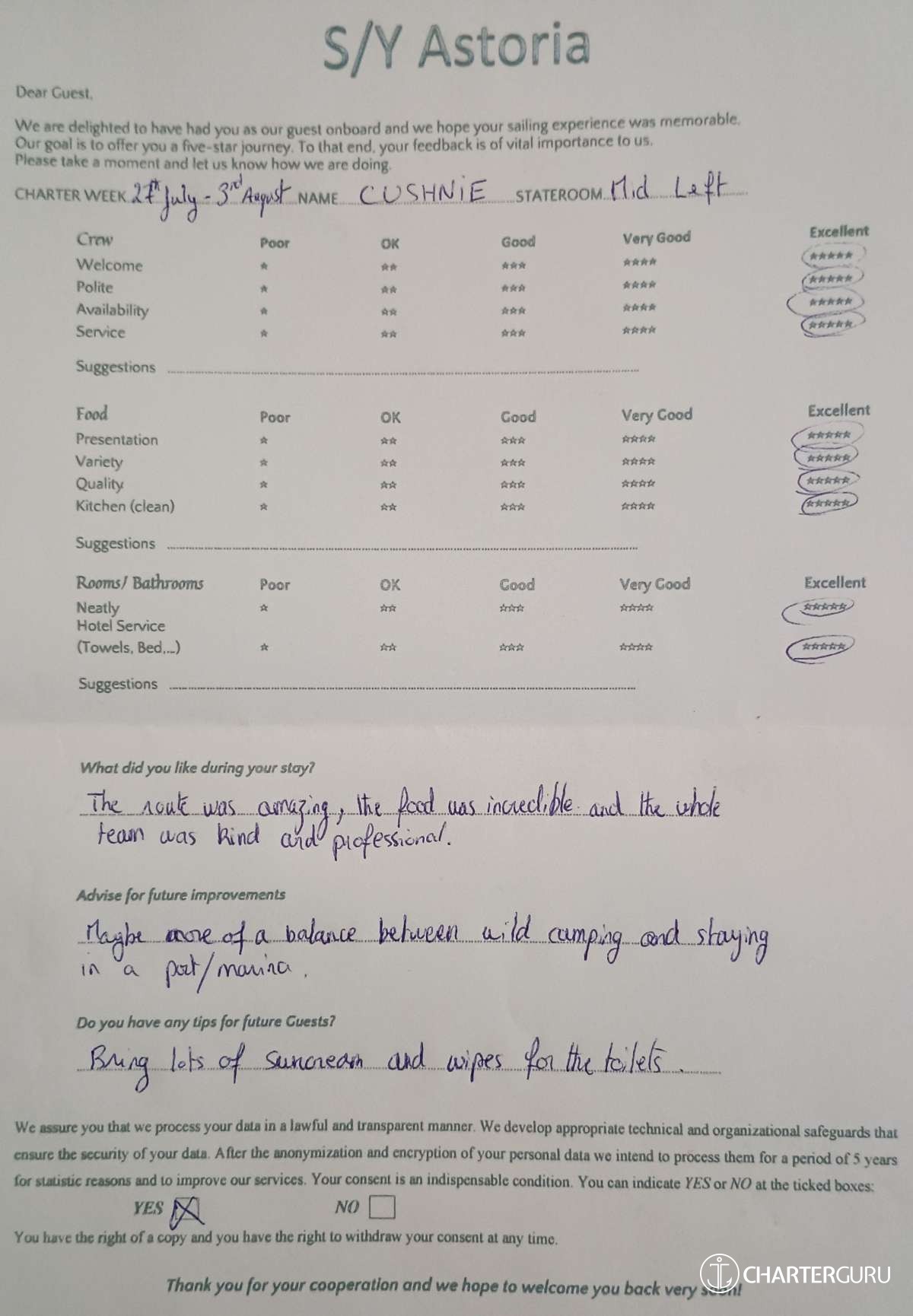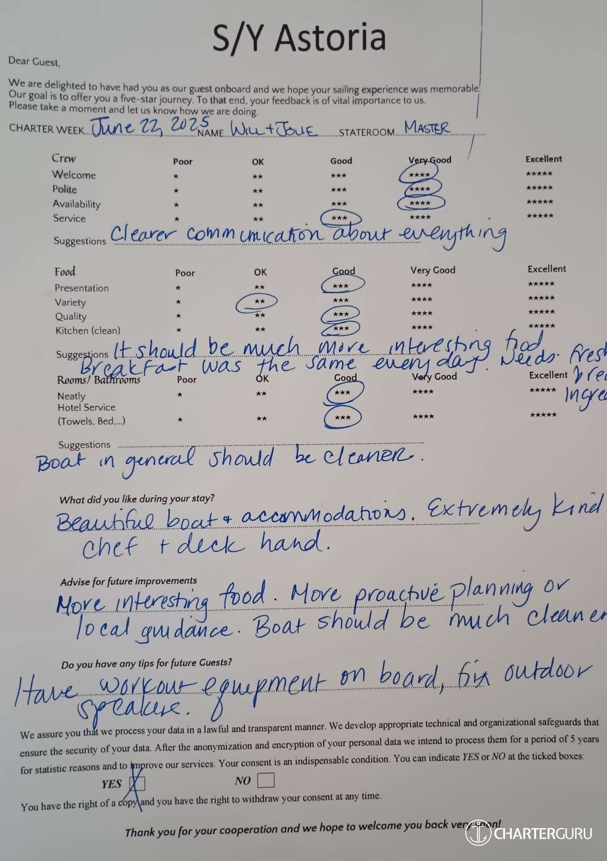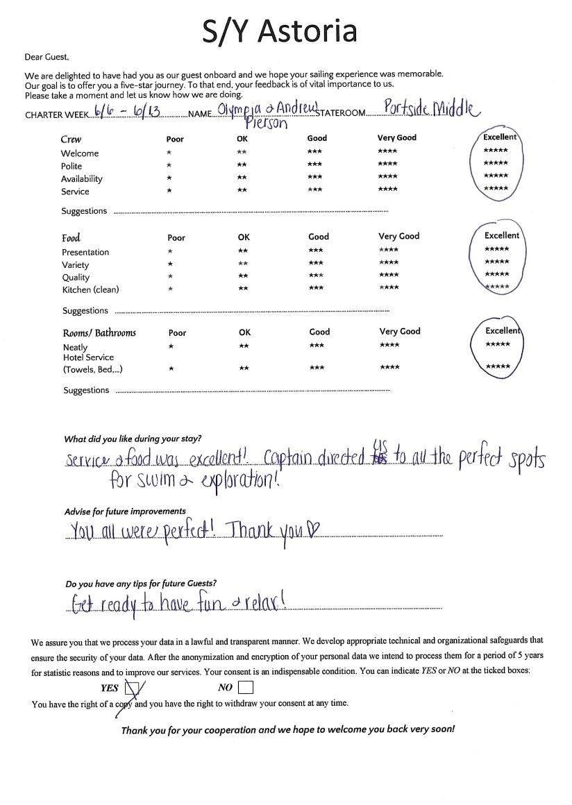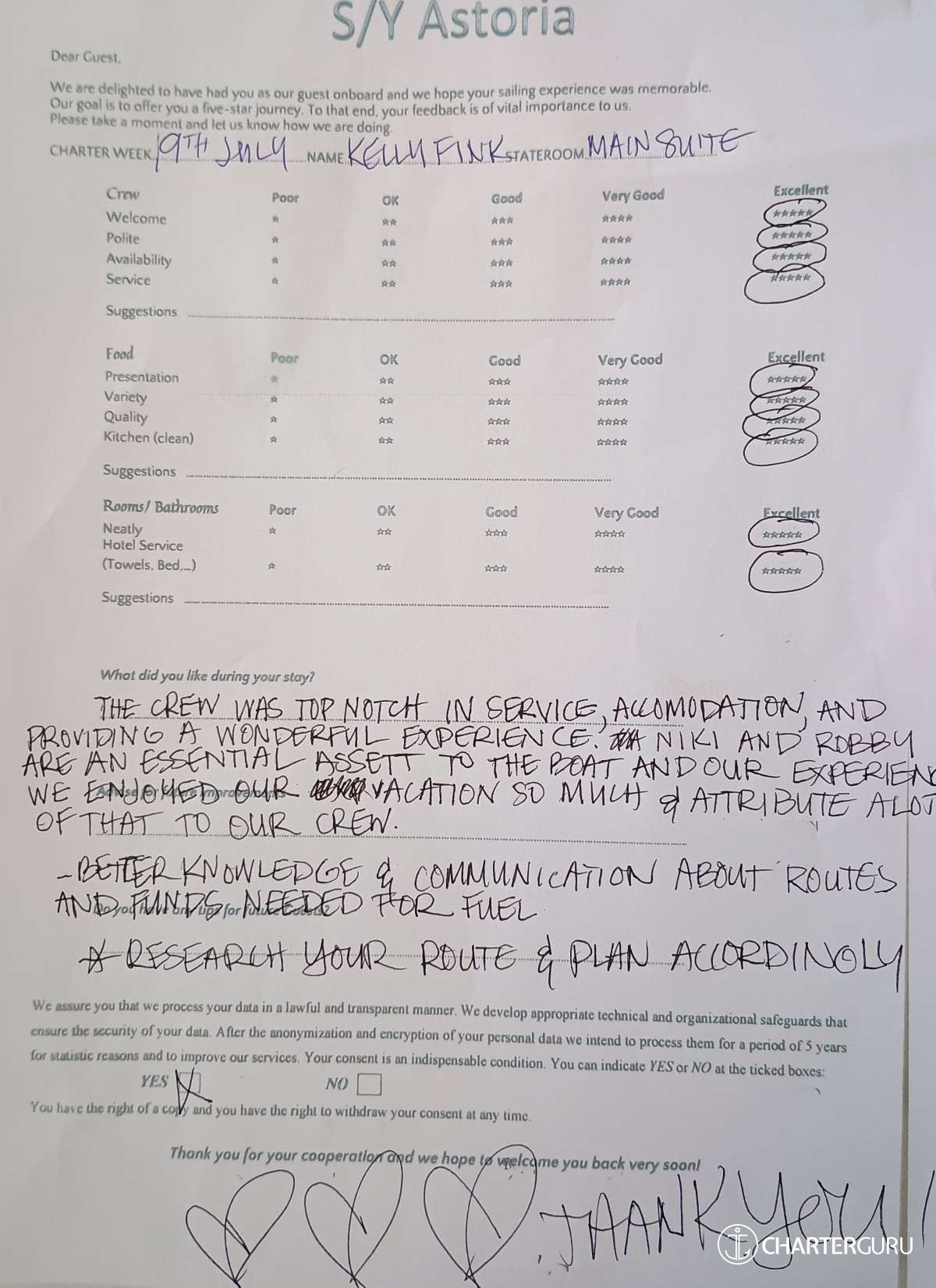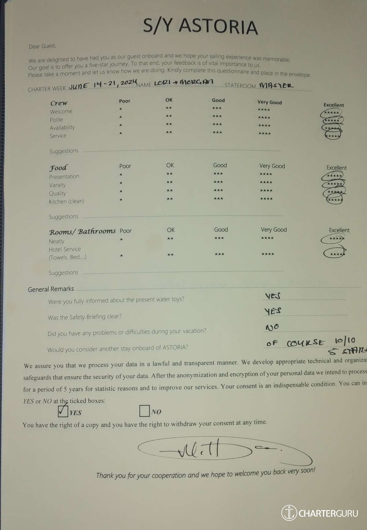 Whether enjoying a tranquil sail, a family celebration, or a sunset over crystal-clear waters, S/Y Astoria promises the perfect blend of adventure, elegance, and relaxation — a sailing experience unlike any other.