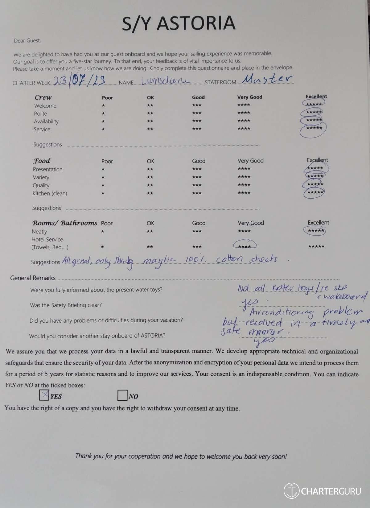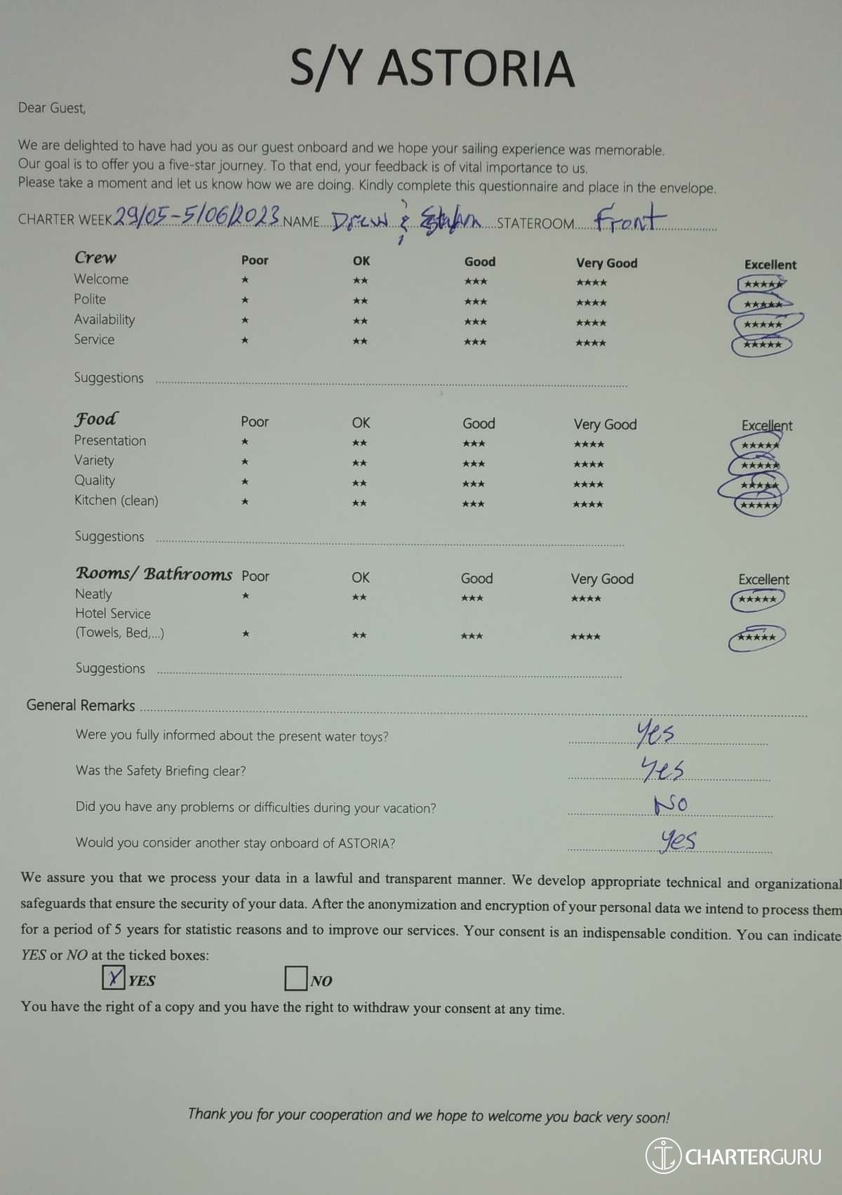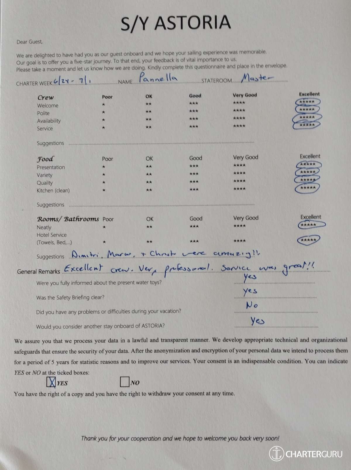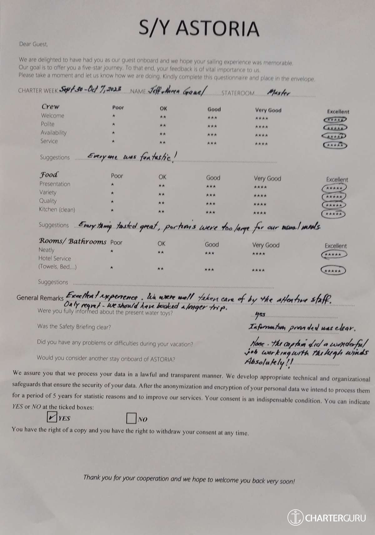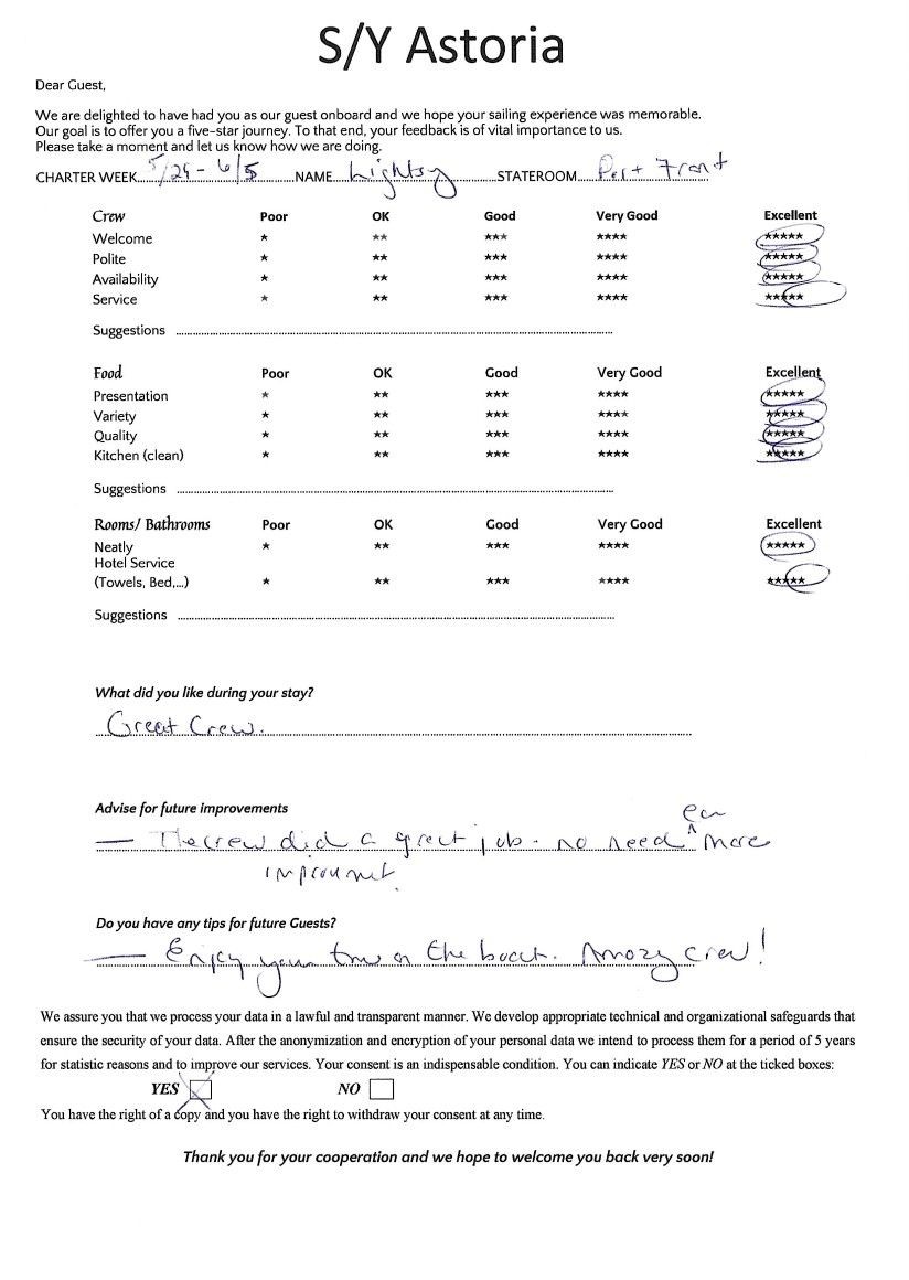 Whether enjoying a tranquil sail, a family celebration, or a sunset over crystal-clear waters, S/Y Astoria promises the perfect blend of adventure, elegance, and relaxation — a sailing experience unlike any other.
