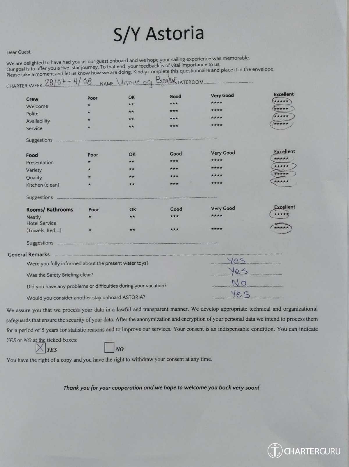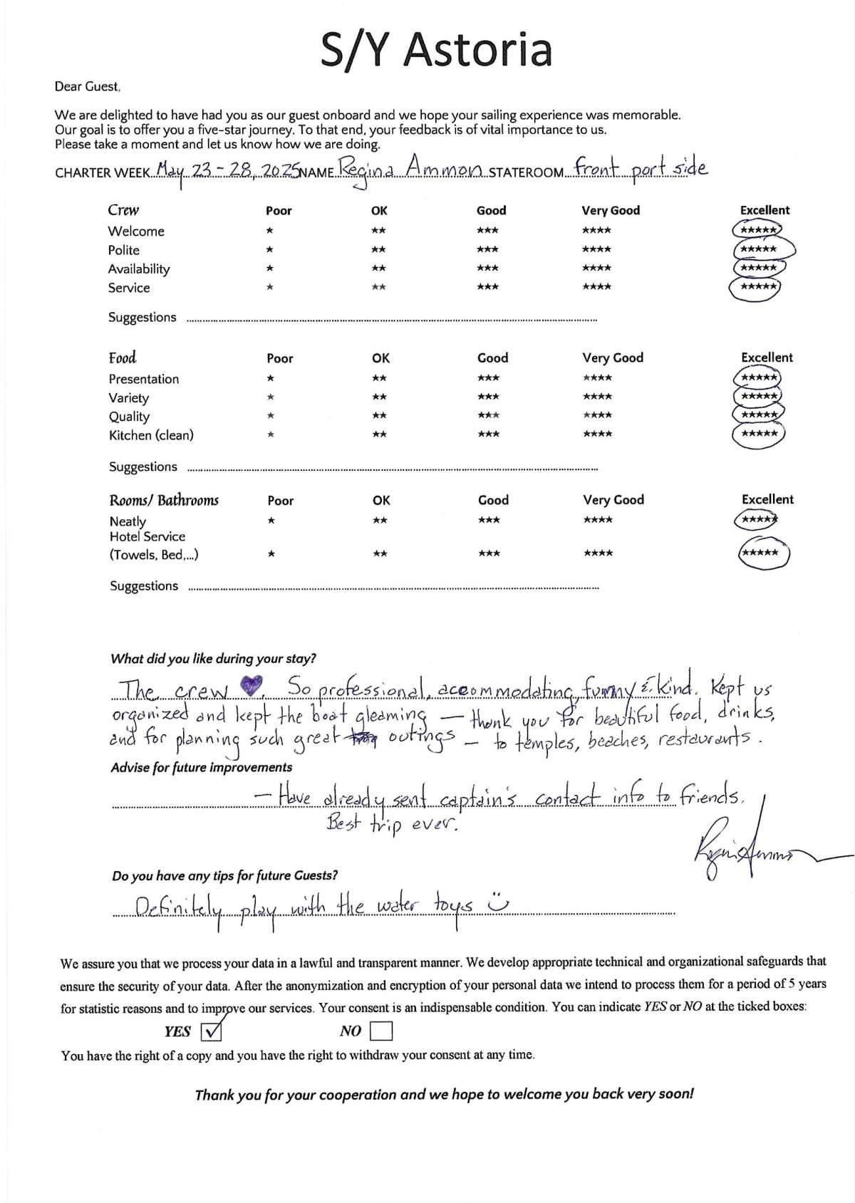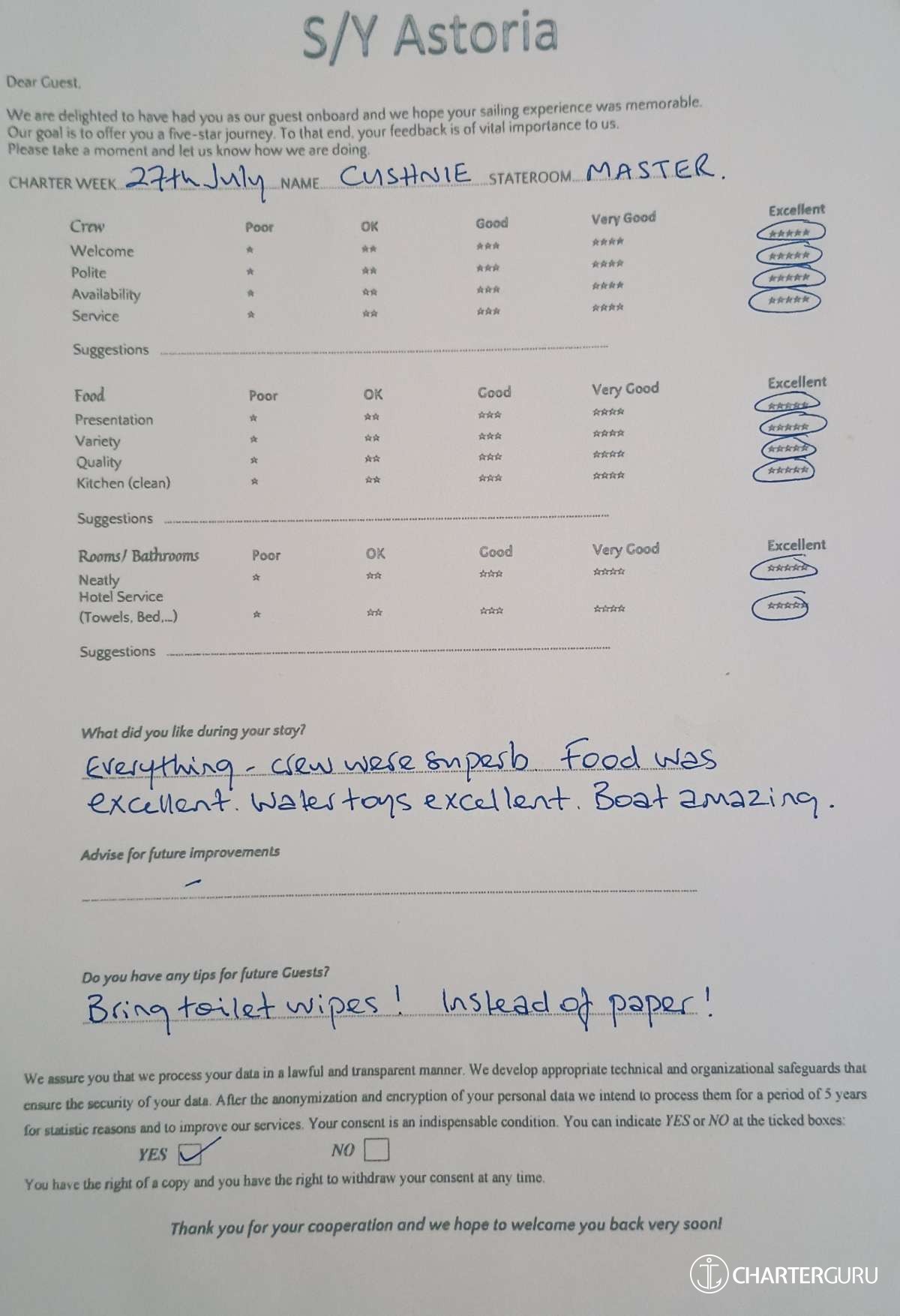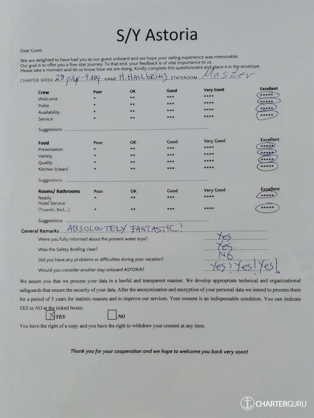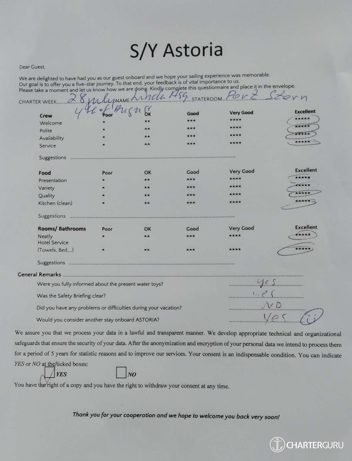 Whether enjoying a tranquil sail, a family celebration, or a sunset over crystal-clear waters, S/Y Astoria promises the perfect blend of adventure, elegance, and relaxation — a sailing experience unlike any other.