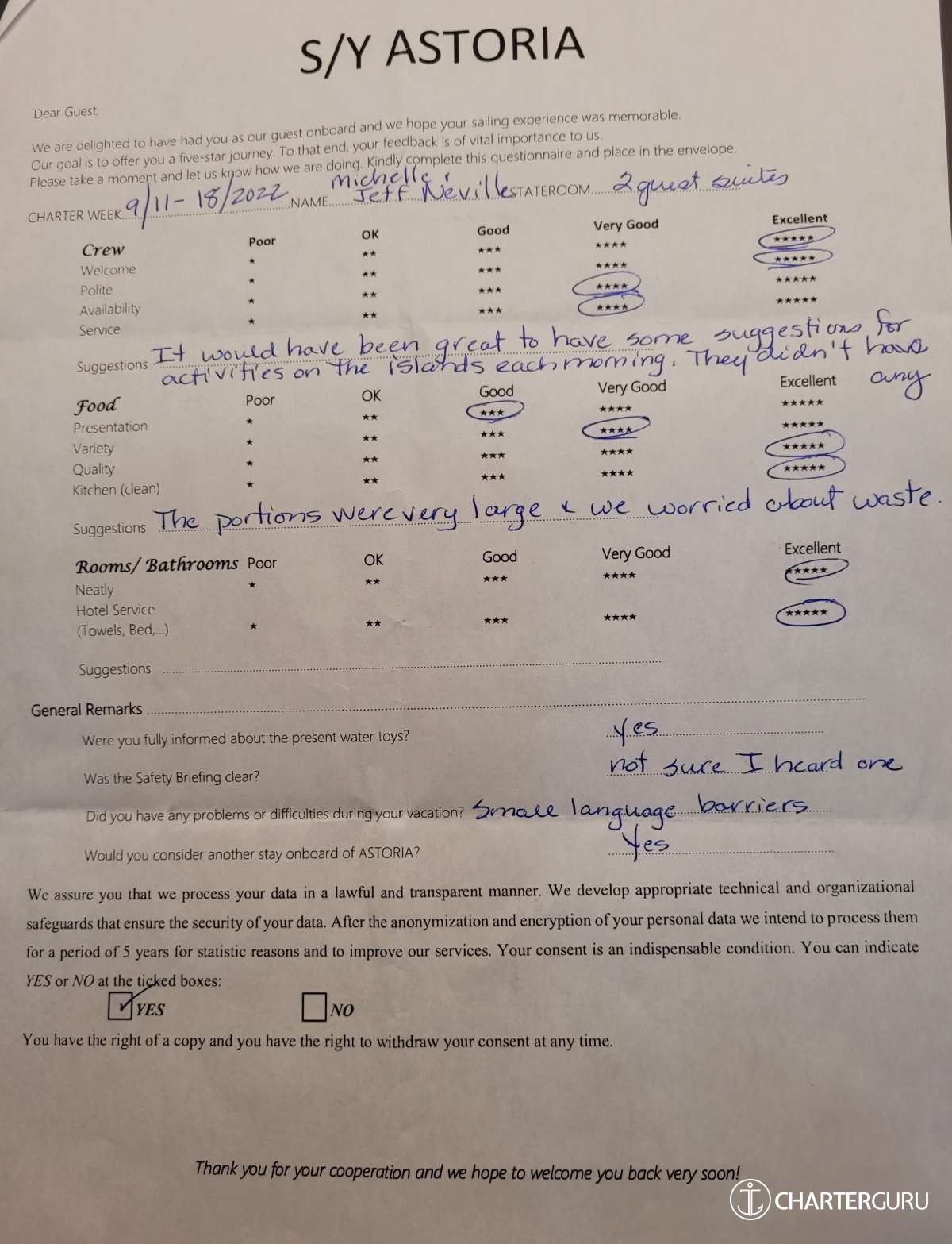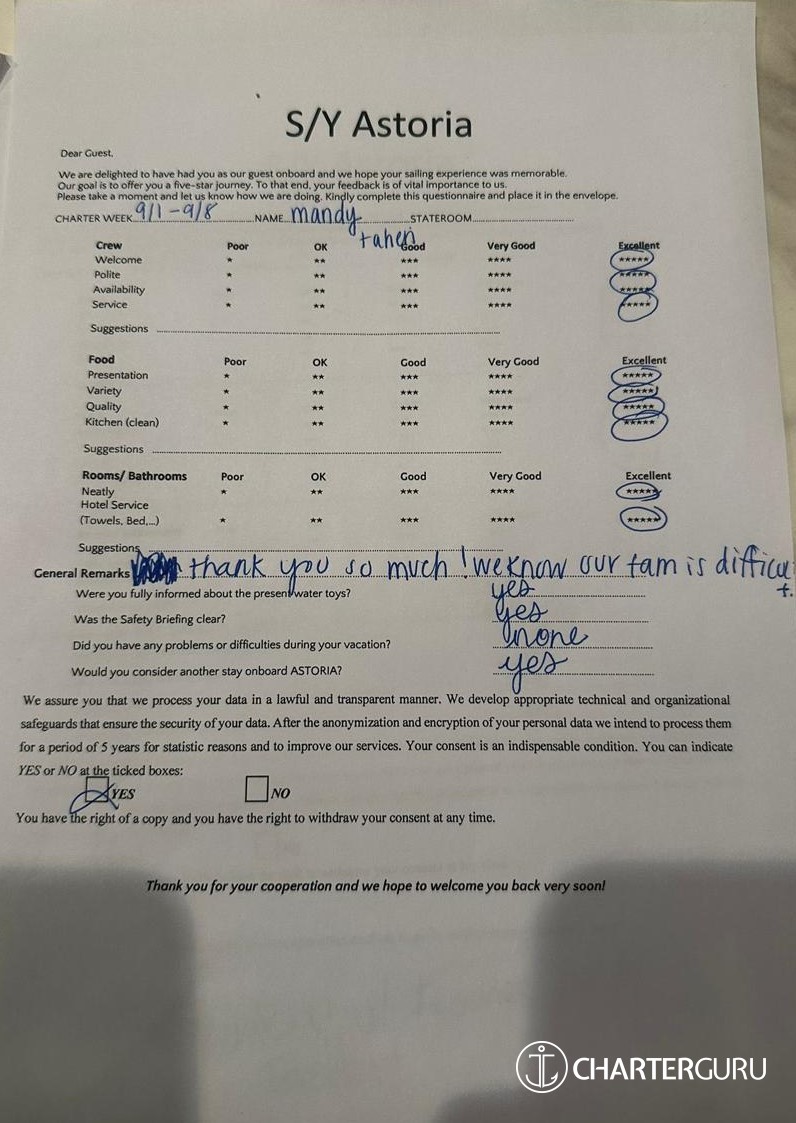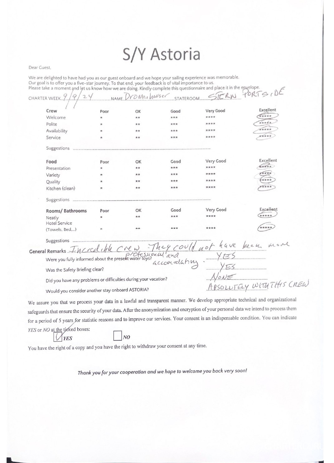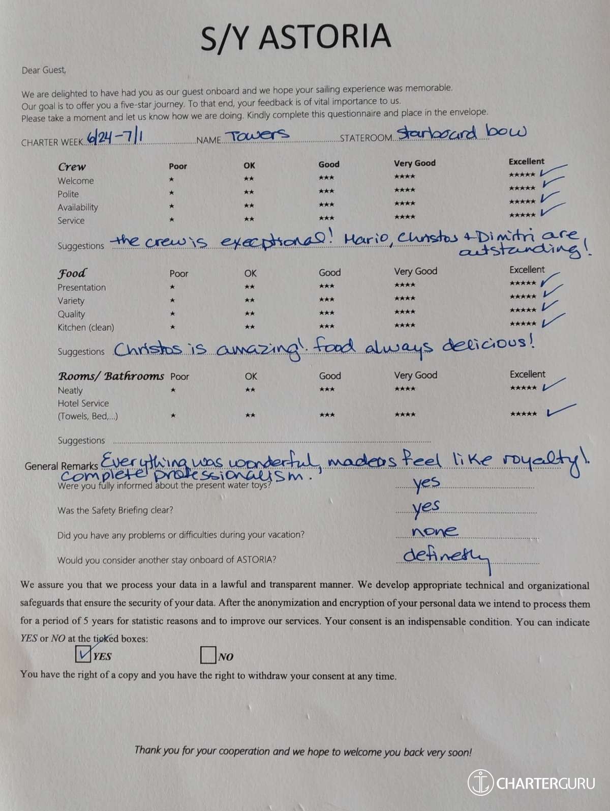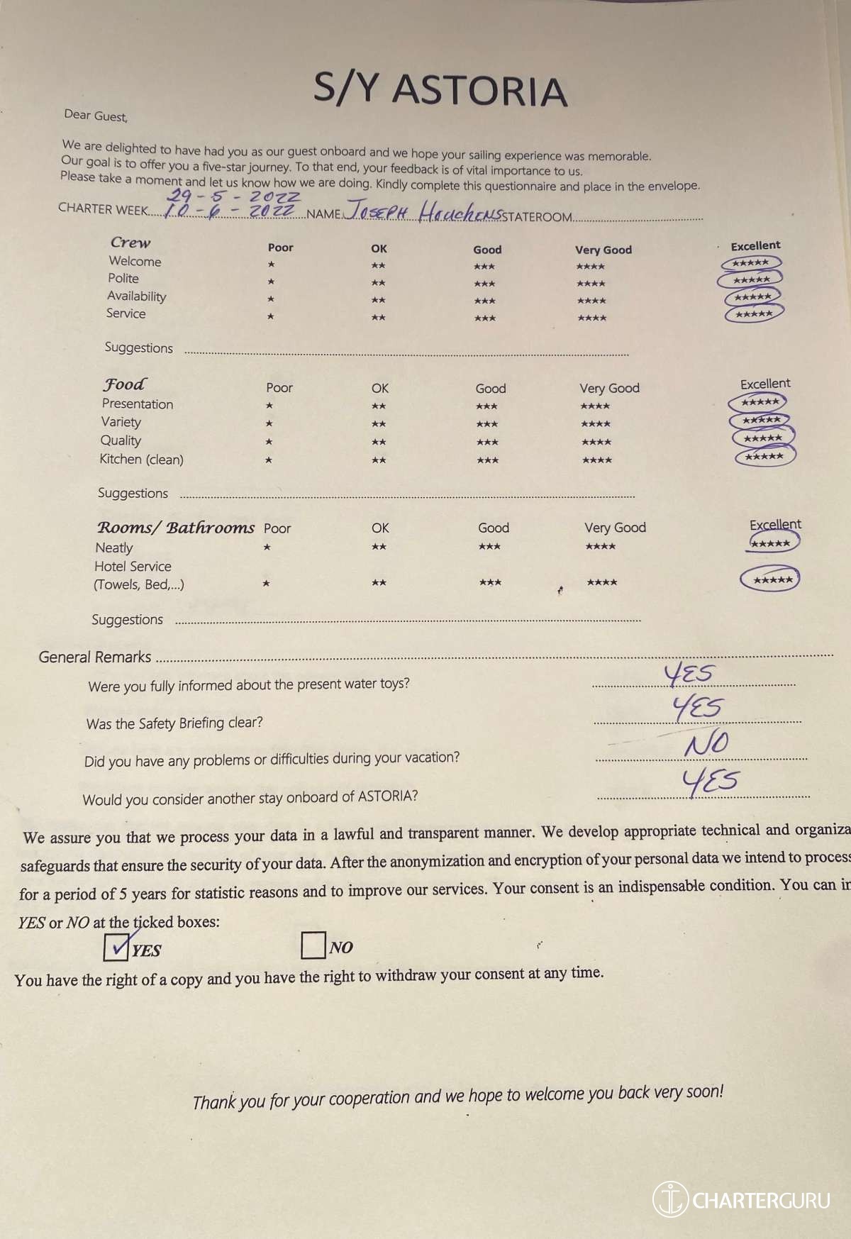 Whether enjoying a tranquil sail, a family celebration, or a sunset over crystal-clear waters, S/Y Astoria promises the perfect blend of adventure, elegance, and relaxation — a sailing experience unlike any other.