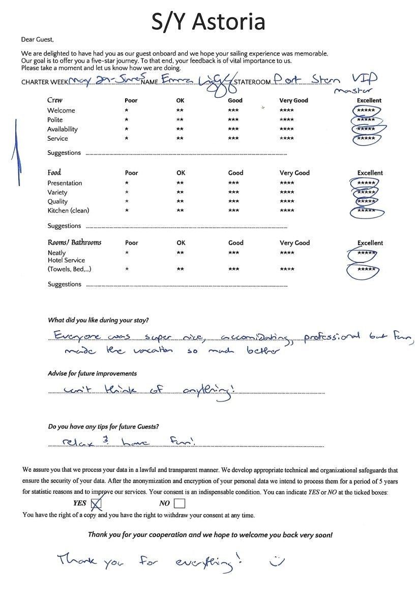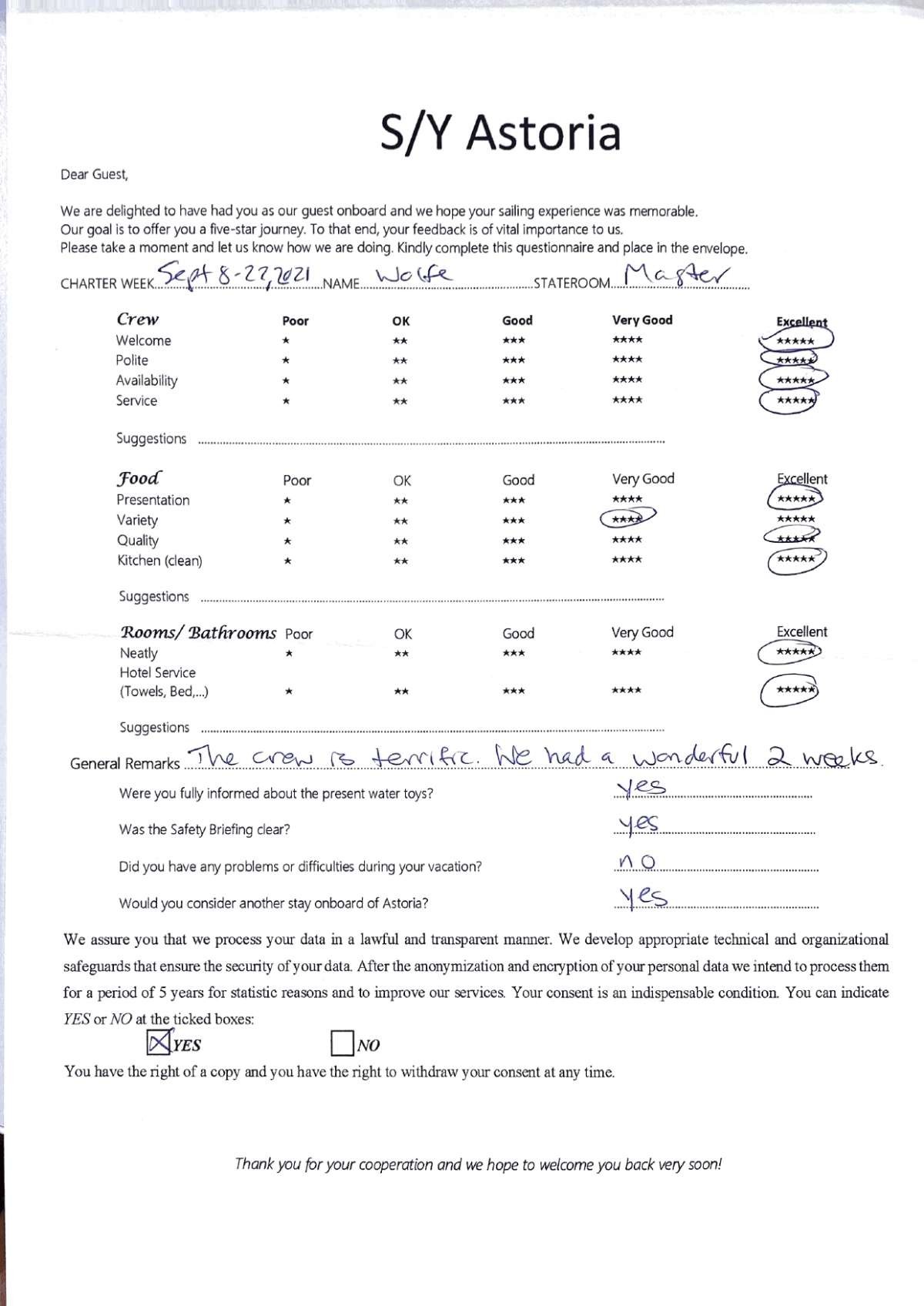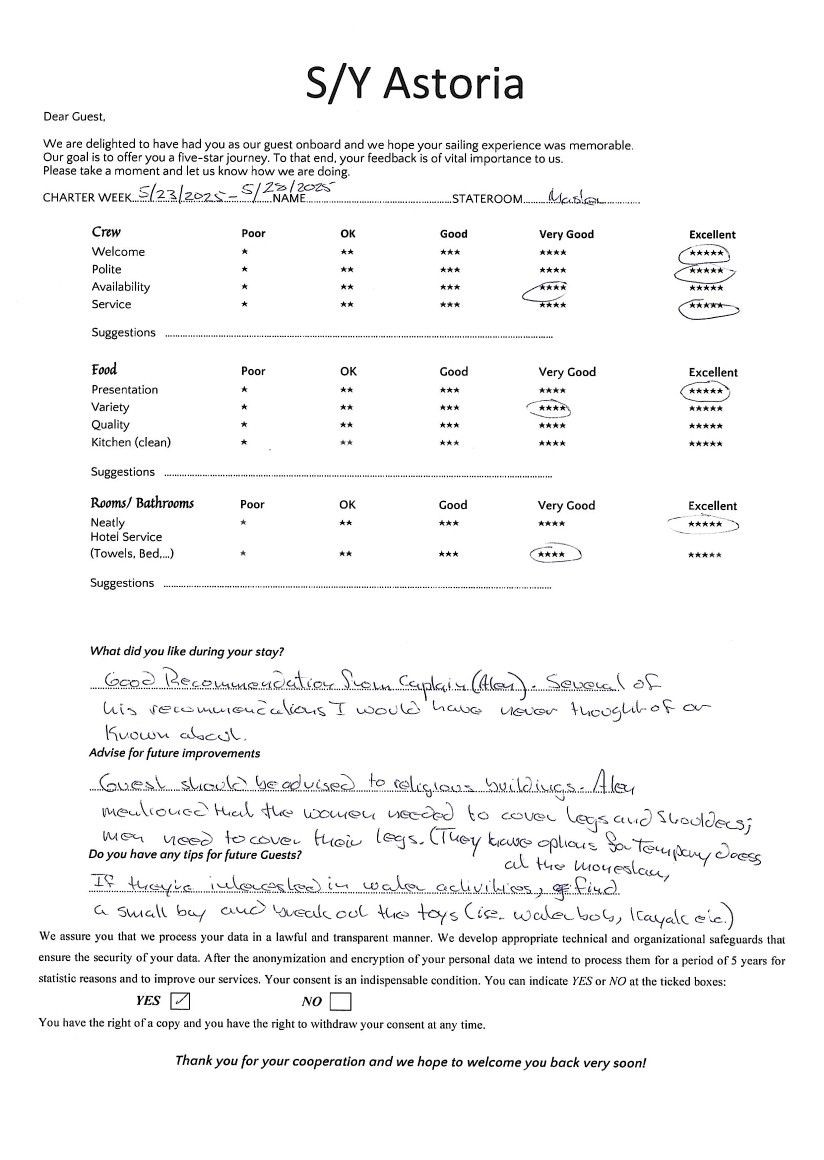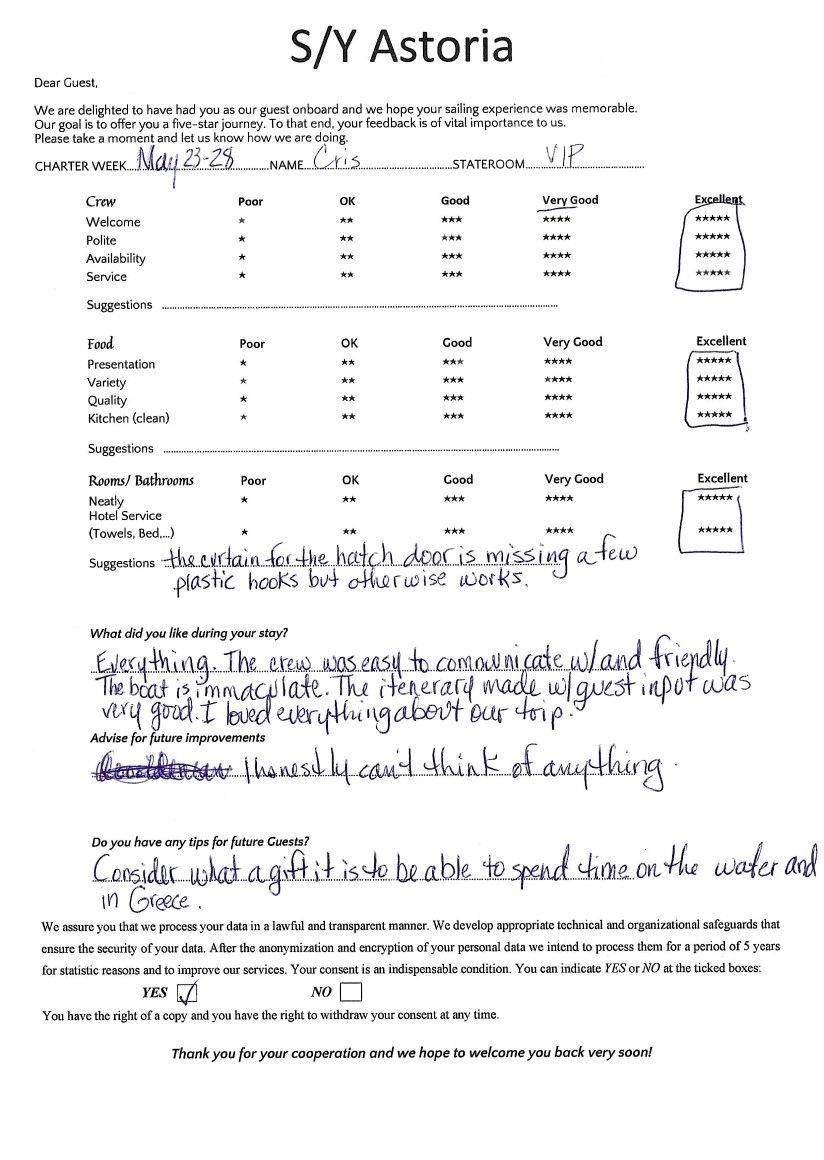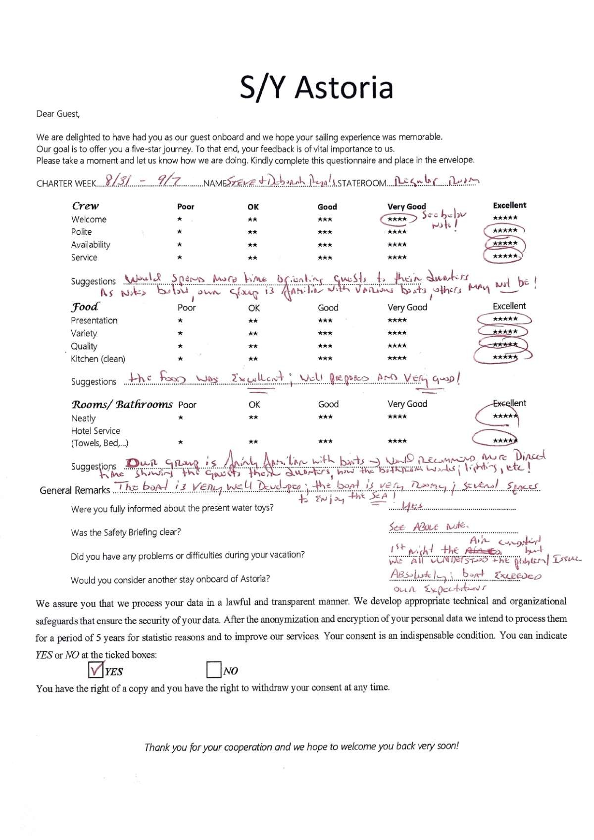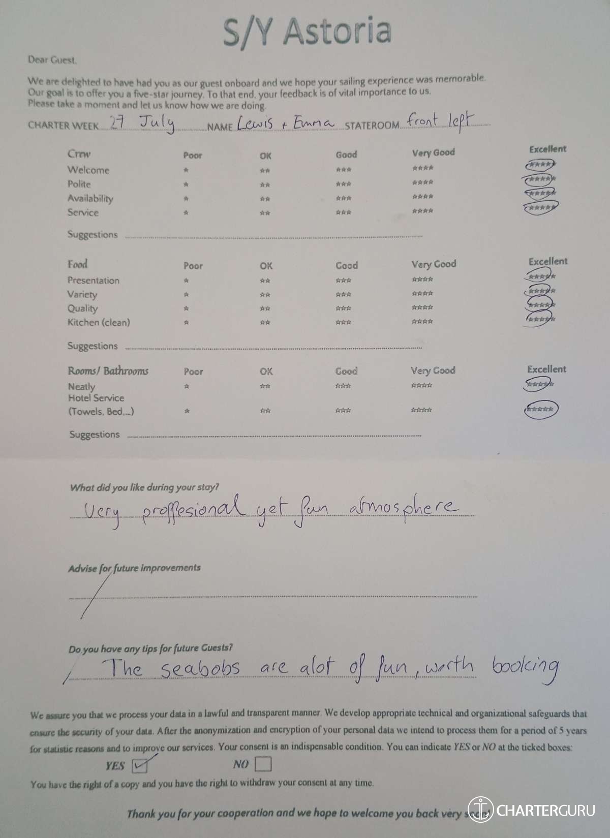 Whether enjoying a tranquil sail, a family celebration, or a sunset over crystal-clear waters, S/Y Astoria promises the perfect blend of adventure, elegance, and relaxation — a sailing experience unlike any other.