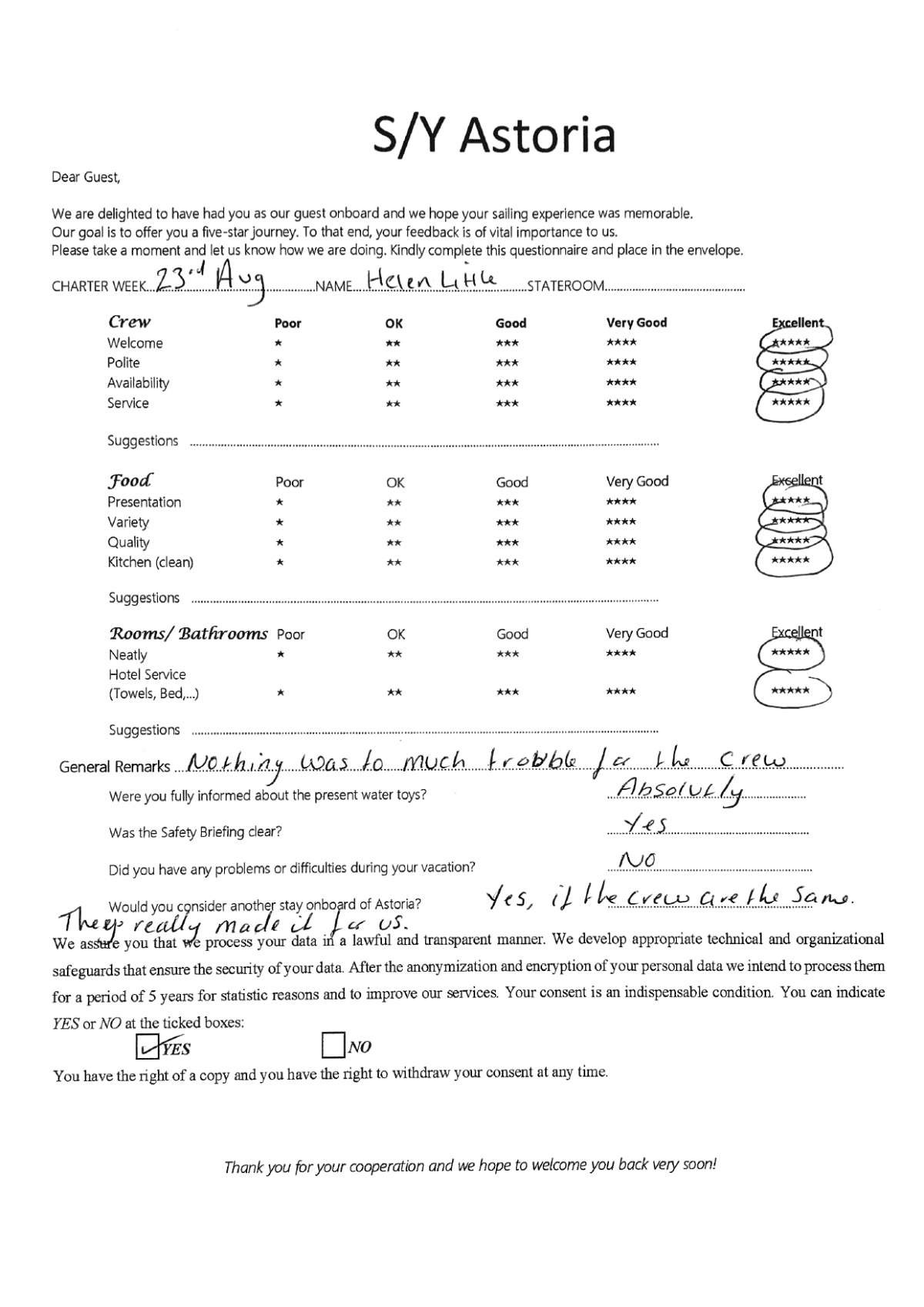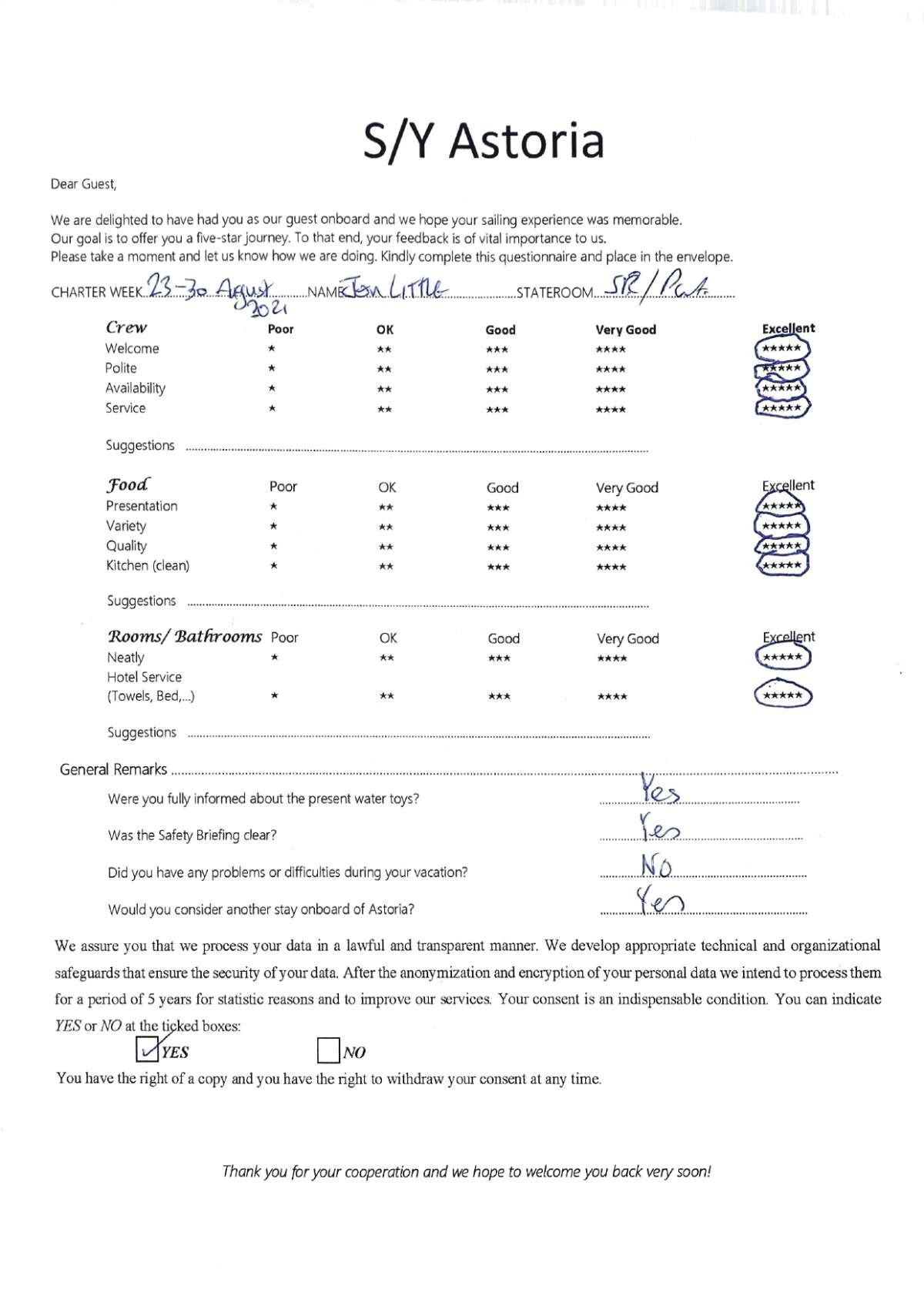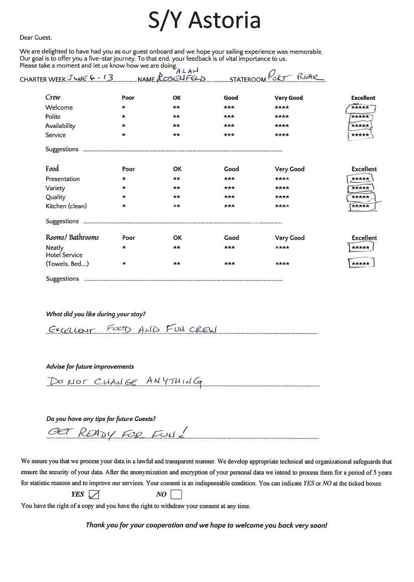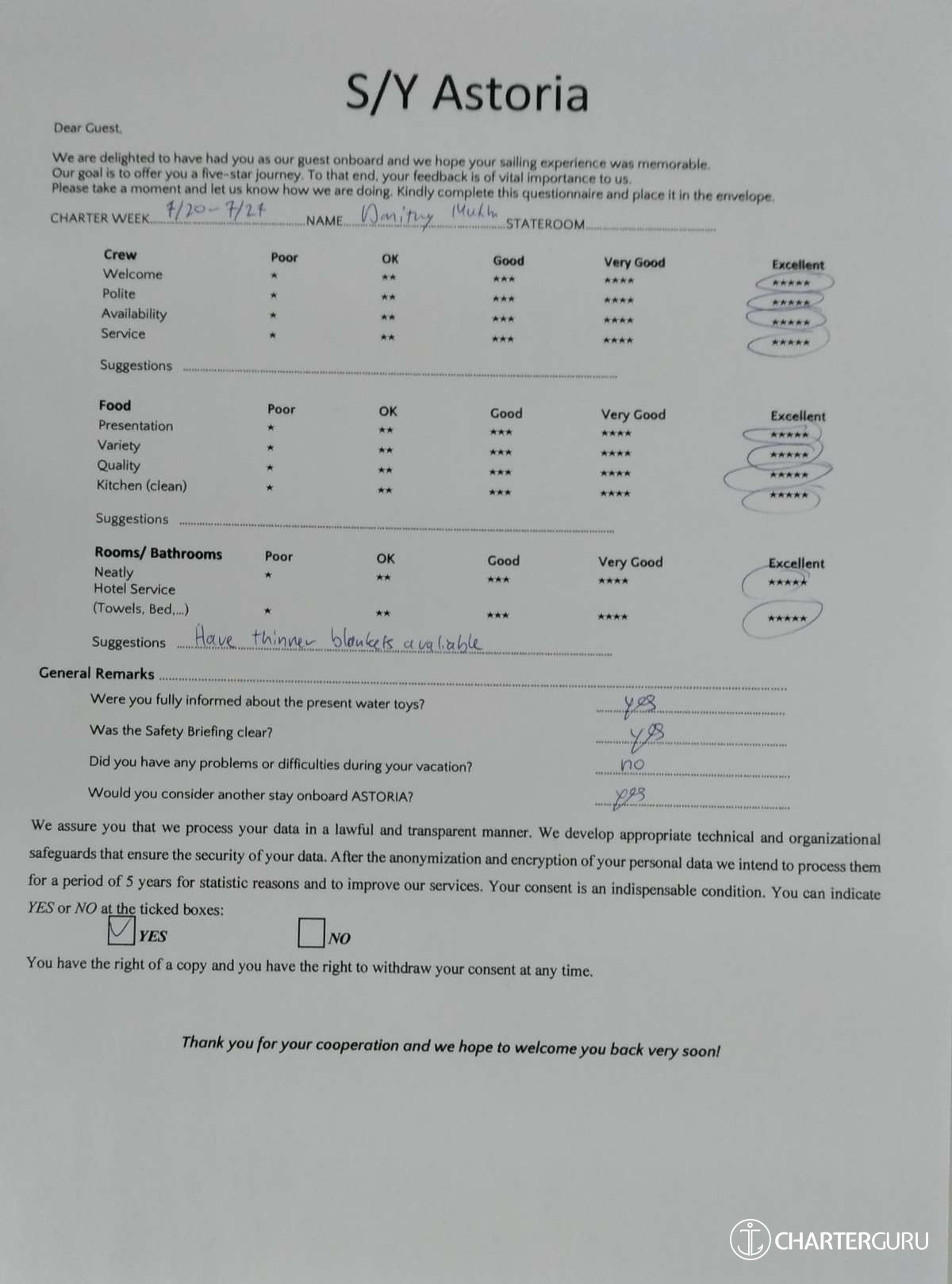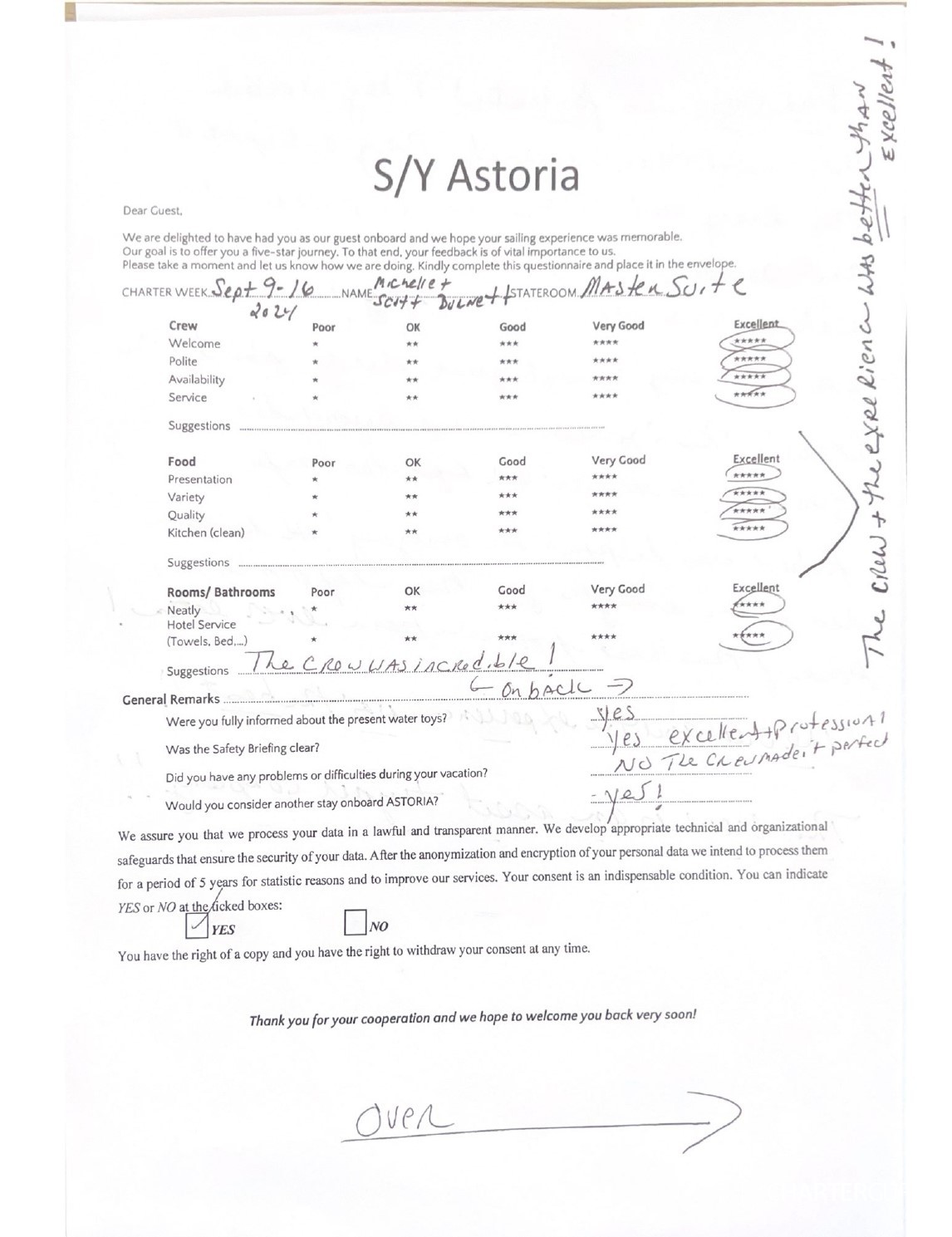 Whether enjoying a tranquil sail, a family celebration, or a sunset over crystal-clear waters, S/Y Astoria promises the perfect blend of adventure, elegance, and relaxation — a sailing experience unlike any other.