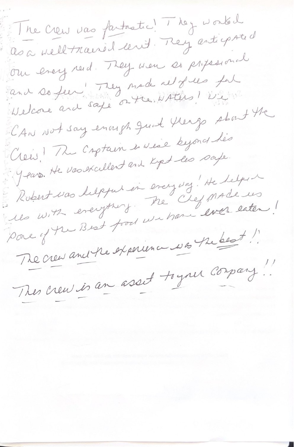 | # of charter days | Base Price | APA (deposit for provisioning, fuel, docking fees, etc) | Total | Note | |