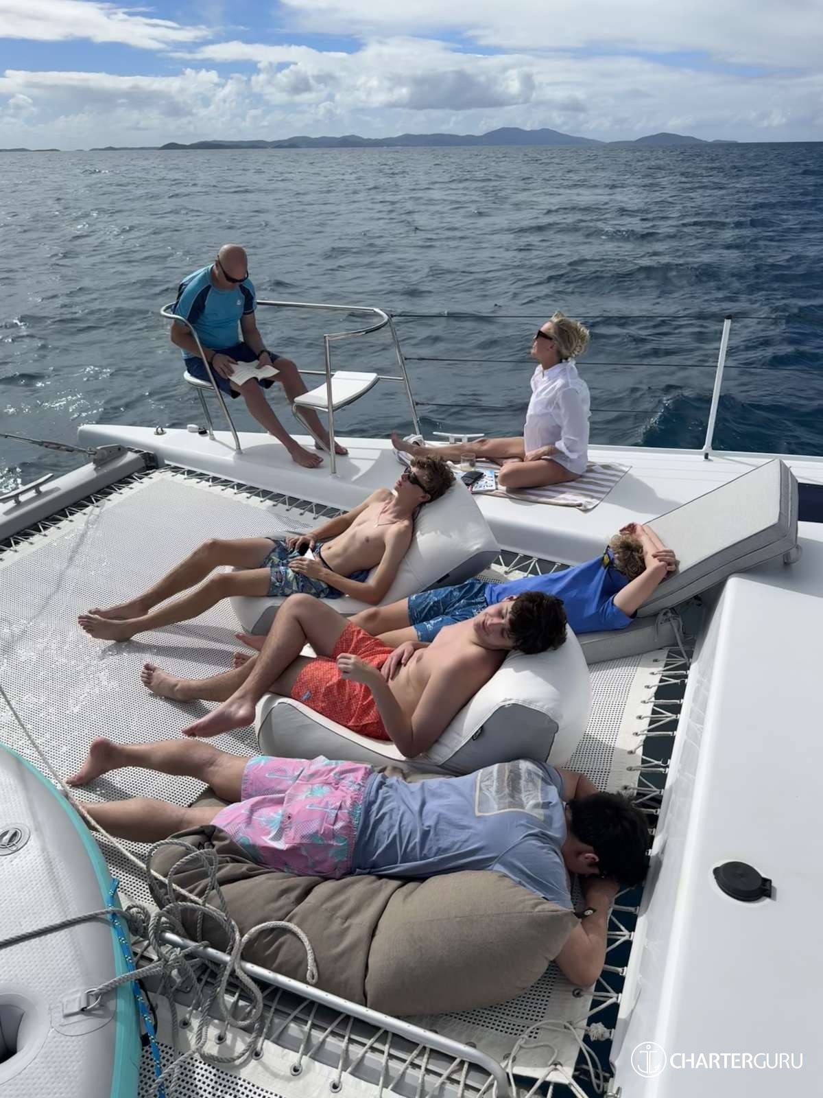 There was plenty of room to move around, so we never felt cramped or confined. The trampolines on the bow were a terrific spot to enjoy both sailing and sunset cocktails.
