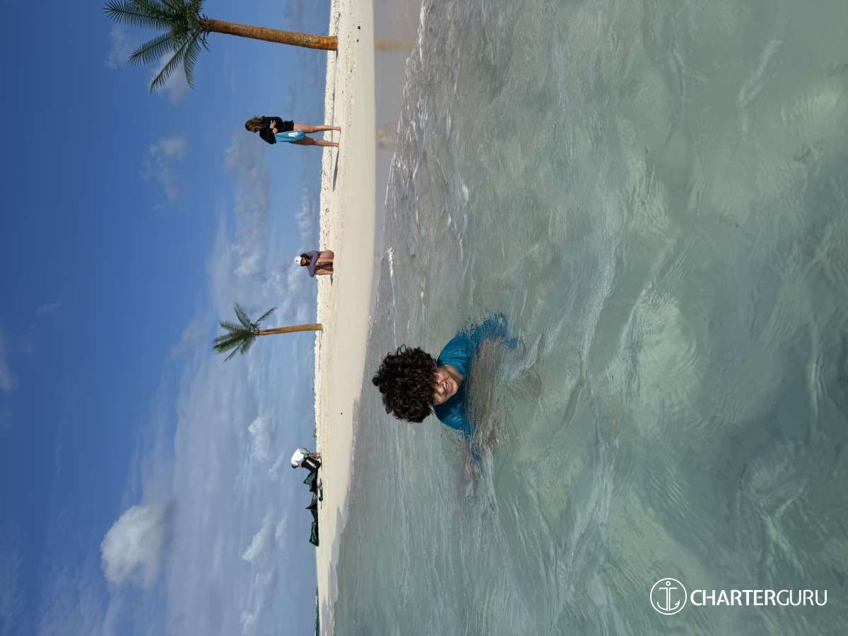 The crew was absolutely delightful. Captain Fraser was an excellent captain who showed us many beautiful beaches and snorkeling spots. He found a perfect windy spot for Kenny to kite-board, twice.