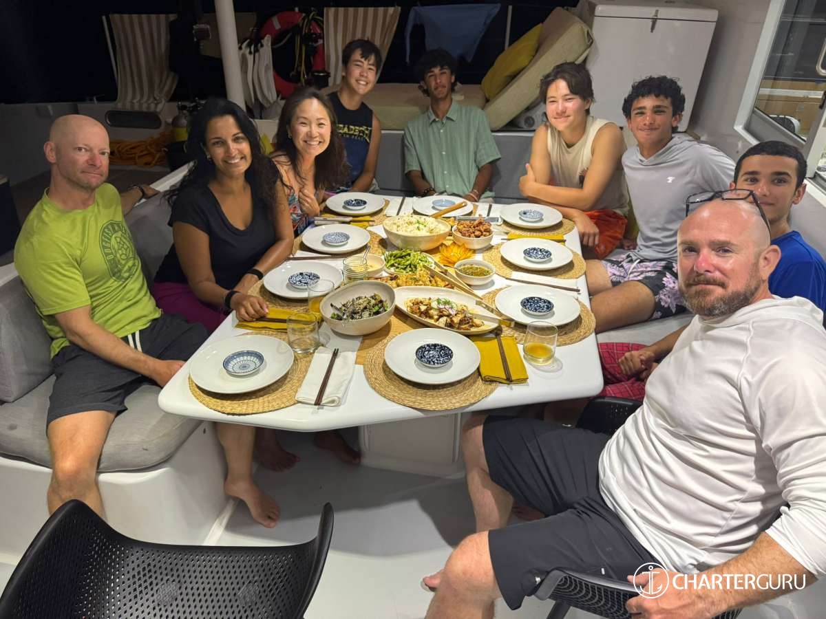 Olivia was an excellent cook with a lovely demeanor and Jess was very accommodating and so sweet. They were sweet enough to make a reservation for Kenny and I to dine at one of the restaurants while the kids stayed on the boat and had a blast playing board-games with the crew. The boat was very clean and comfortable.