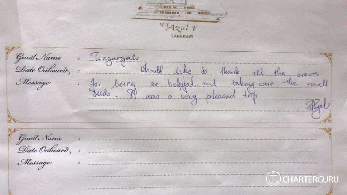 Now, As a Crew Member of M/Y AZUL V he proved that he has a good interpersonal, troubleshooting skills and his attention to the maintenance and safety of the machinery onboard will ensure your safe stay and remain comfortable.