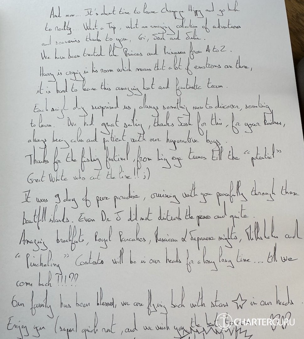 We have been treated like princes and princesses from A to Z. Harry is crying in his room which means that a lot of emotions are there, it is hard to leave this amazing boat and fantastic team.
