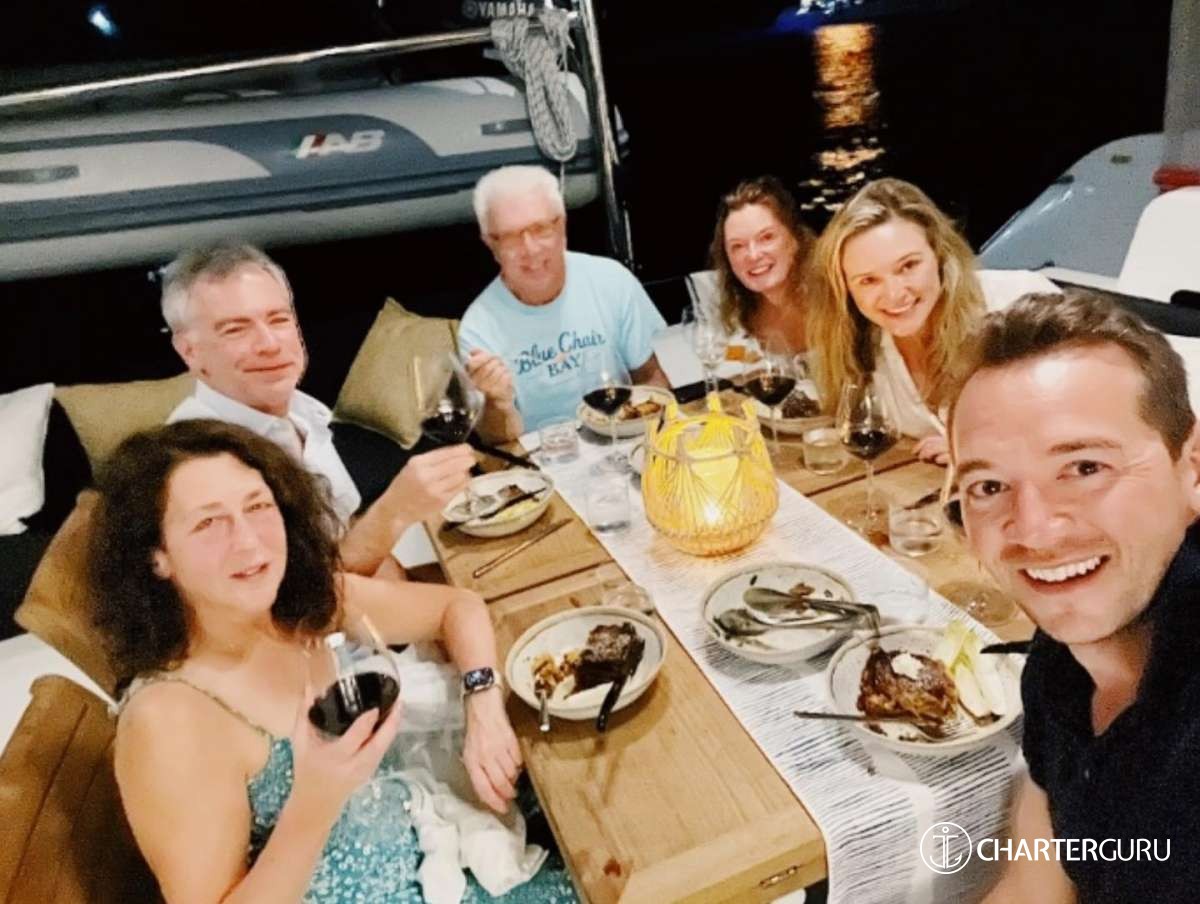 There were four of us adults (along with Christian, the captain, and Nix, the chef). The space onboard was comfortable — we were able to spend time together and relax freely.