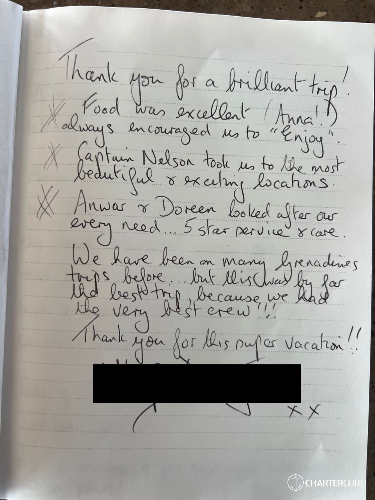 Great! Cruise in the Grenadines. Crew (attentive and attentive). Yacht (well maintained and comfortable)