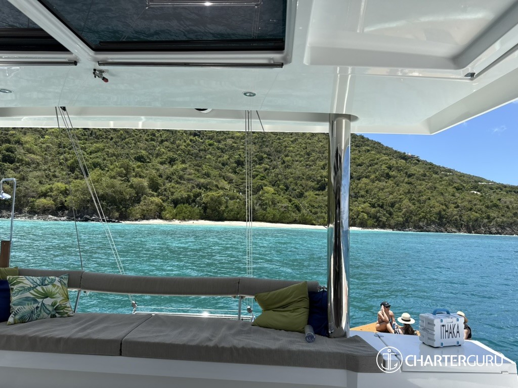 This brand new 2022 luxurious sailing catamaran, ITHAKA, is definitely a fine example of what Bali can design. As you step on board in to a beautifully appointed cockpit, complete with teak floors and dining table for eight and a comfortable lounging bench, you immediately realize what a unique charter experience you are about to have. As you make your way up to the flybridge you’ll be blown away by the amazing turquoise water with 360° views and enjoy the up-close view of the sails. It’s also a great place to read your favorite book or a favorite spot for appetizers and cocktails at sundown. The main salon is comfortable and luxurious with open spaces and natural light fed by all the windows surrounding you. All four guest cabins are spacious with large windows and offer plenty of natural light. For your comfort, every cabin offers queen sized beds and private baths with dedicated shower stalls as well as flatscreen TVs and a stereo system for both central and individual cabin control. The high level of finishing throughout every cabin reflects the luxury that you would expect from a yacht of this caliber. With all the different areas, ITHAKA is show-stopper and has enough amenities for everyone to enjoy!