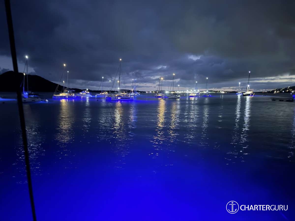 The catamaran itself is stunning and spacious. There is plenty of storage space for your belongings and deck space to hang out and not feel crowded. Every last detail has been thought of onboard from nice linens in the rooms, games when you need relief from the sun, different table linens for each meal, an outdoor shower for a quick rinse, snorkel and paddle board gear for entertainment at your destinations or when at anchor. The underboat lights were awesome at night and allowed for incredible views into the water to see the ocean life.