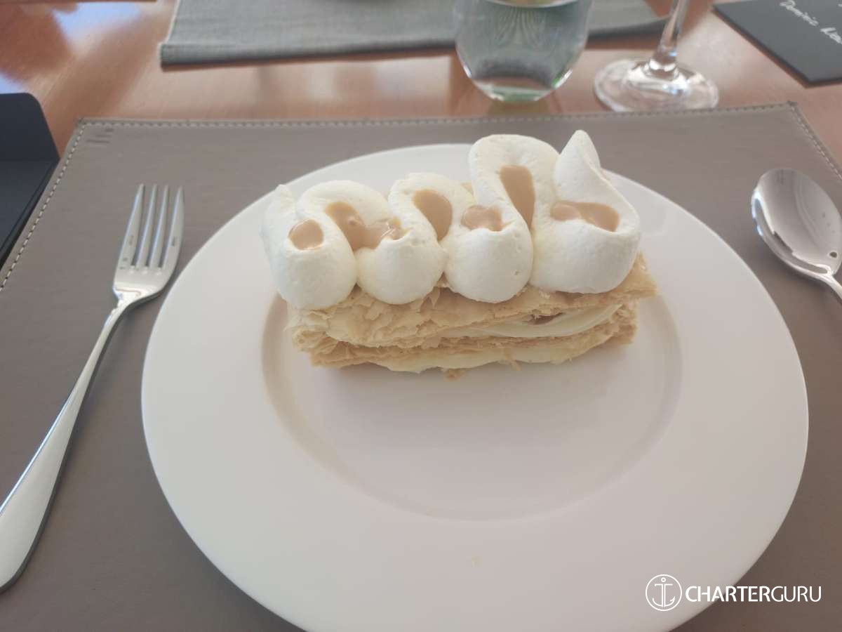 Just Marie 2 is offered primarily as a power catamaran. The central space of the yacht is the main saloon, which connects to the aft deck. The aft deck is generous, with a prominent dining and seating area and that's where most of the delicious meals are served. The tastefully decorated cabins are located in the 2 massive hulls. The cabins offer designer mattrace beds and feature ensuite bathrooms. Multiple portholes provide a connection with the natural world outside.