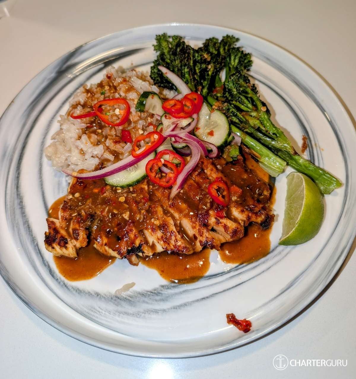 Chef Kristen Born and raised in Maryland, Kristen developed her love for the ocean sailing with her family on the Chesapeake Bay. Her passion for cooking has always been part of her travels, whenever she visits somewhere new she immerses herself in local food traditions. After taking a break from her career as a software engineer to travel the world, Kristen's cooking career began during the pandemic when she worked as a chef at an eco-lodge in Colombia, preparing farm to table plant based meals. She later spent summers in Costa Rica at wellness retreats creating health-conscious meals. While building an app to teach sourdough baking, she was able to learn the skill on her own and now she loves finding a way to incorporate sourdough in any baked goods. Now, Kristen has combined her two passions of cooking and the ocean. She's excited to share her love of healthy and nourishing cuisine with her guests. When she's not cooking in the galley, Kristen is out with Harry exploring the world; hiking volcanoes, cycling, skiing, scuba diving and surfing wherever adventure calls.