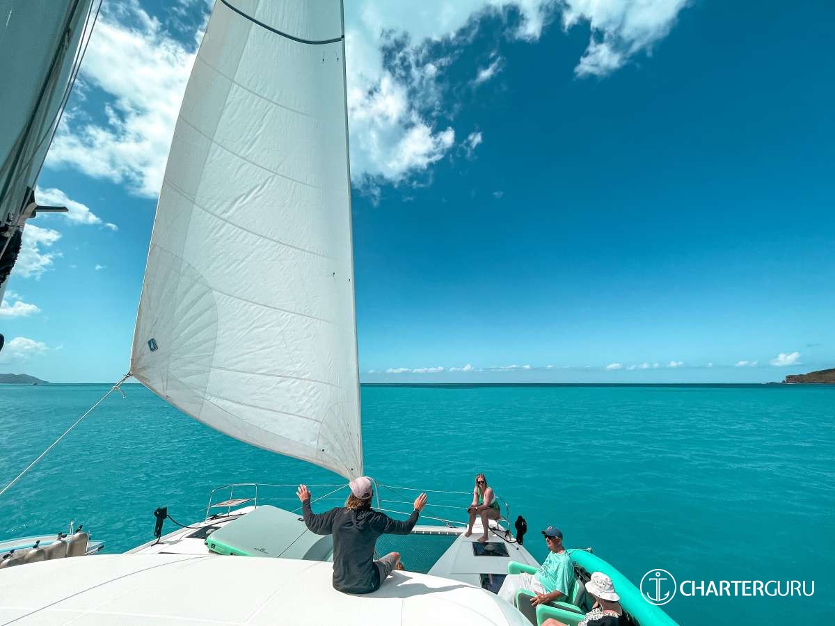 Welcome to S/Y Karma, an award winning Lagoon 50 and home of your next amazing sailing vacation. Offering the highest levels of luxury, comfort, and extravagance, this cruising catamaran is the perfect yacht for your friends and family. Karma offers multiple social areas including the flybridge with 360 degree ocean views, the spacious cockpit and salon with easy interior and exterior access, and the foredeck lounge where you can bask in the Caribbean sun.