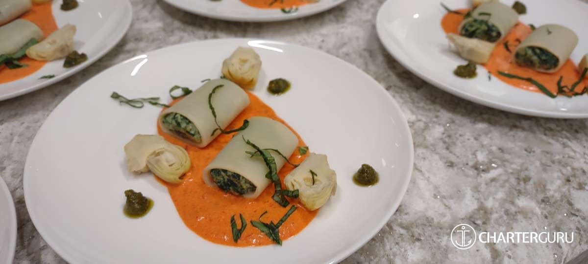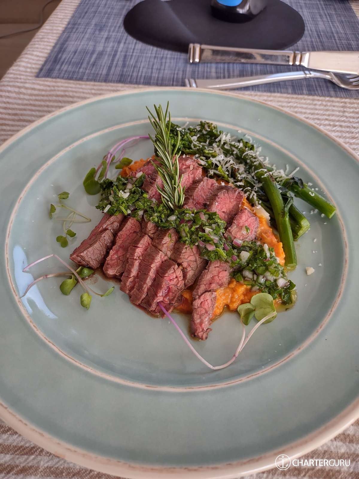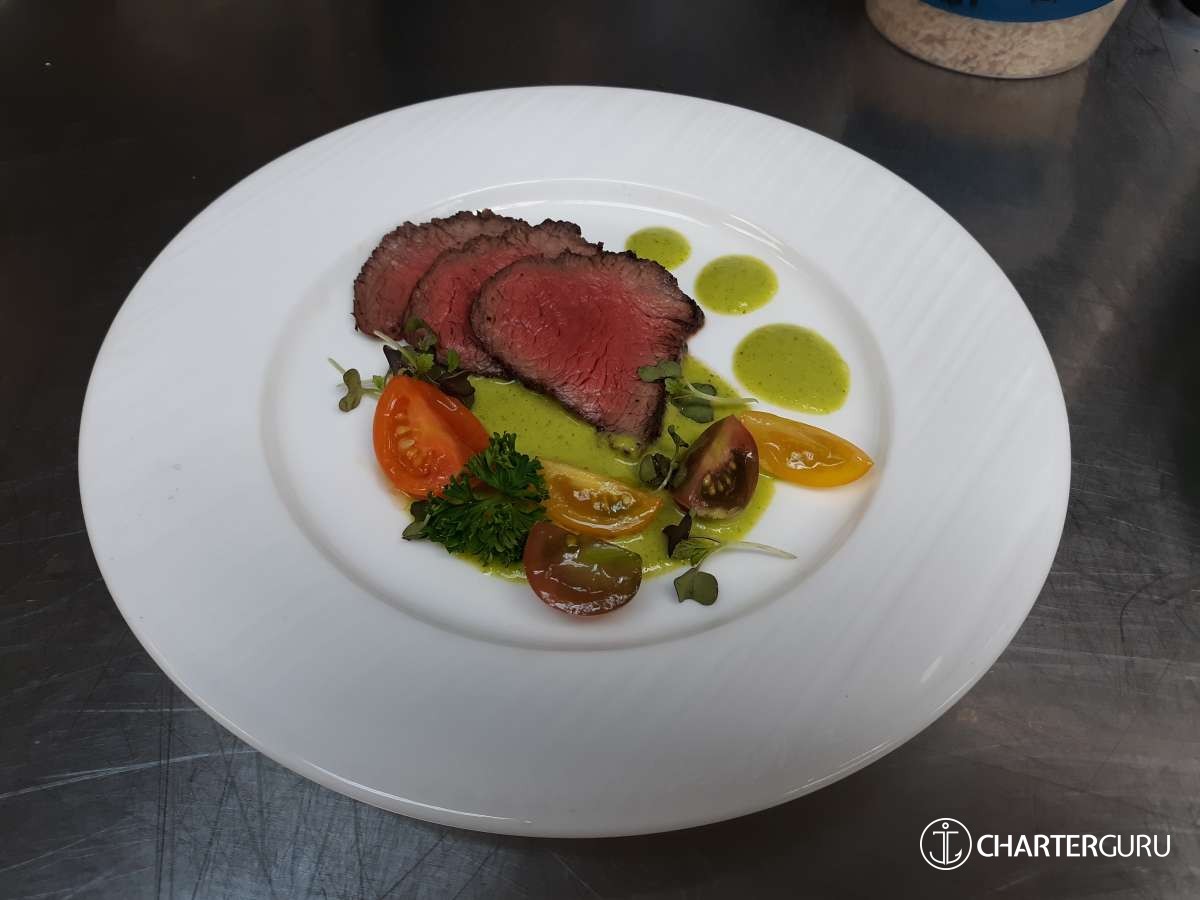 What an amazing chef! We had no idea that meals aboard would be fine dining experiences -- never a duplicated dish and all beautifully presented. It is amazing how she was able to prepare such elaborate meals while underway -- with quite choppy seas in some cases. Unbelievable!
