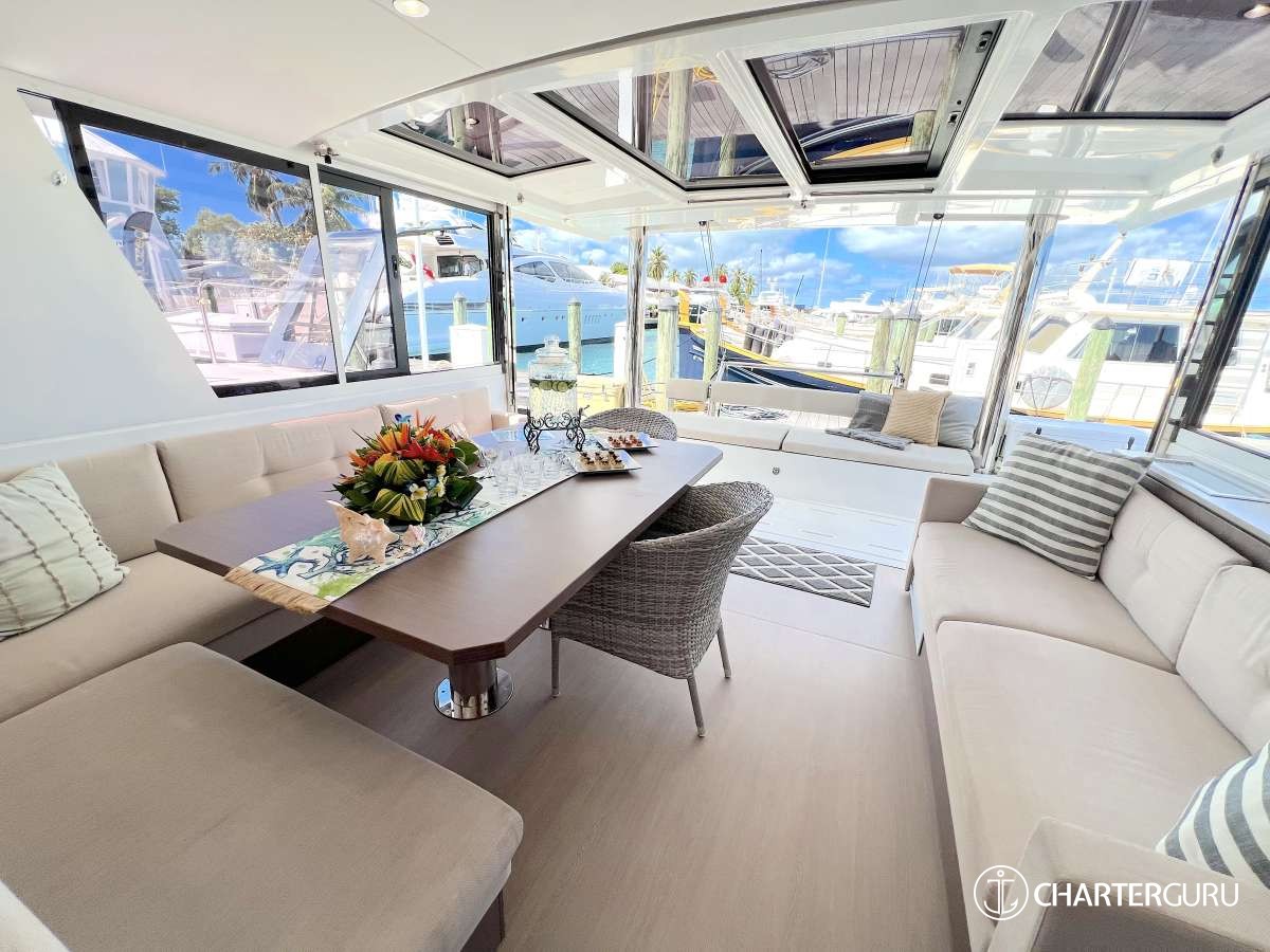 Kittiwake has several expansive living areas ideal for charter vacation, the perfect setting to entertain and soak up the sun.Kittiwake has three spacious and bright staterooms each with a private ensuite. The master cabin encompasses the entire port hull, with multiple large windows to enjoy the view. The starboard side consists of two queen cabins, with walk around beds, and one midship twin bunk cabin (crew cabin), and one queen aft cabin.