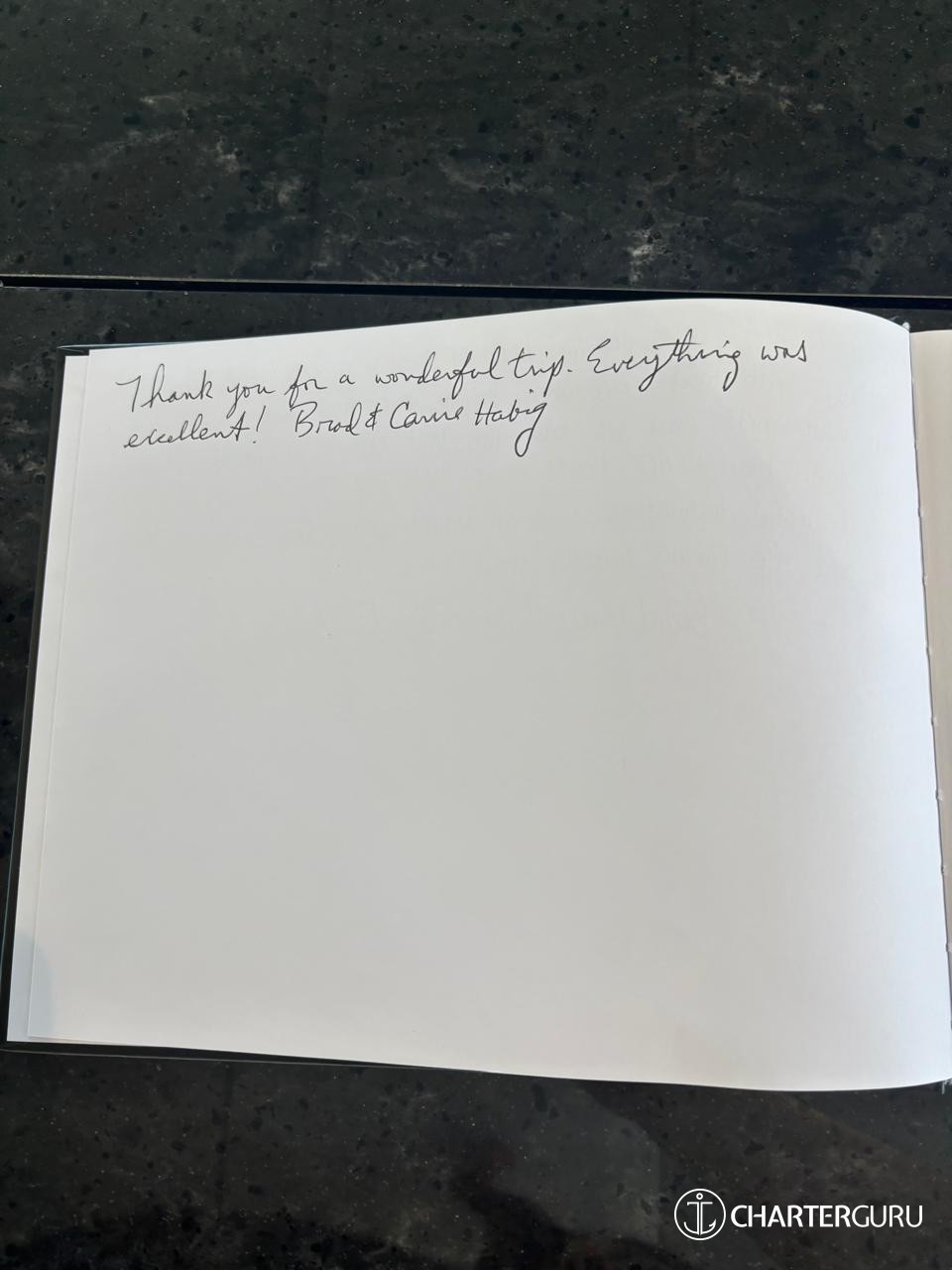 Not sure how to say thank you for such a great 5 days. You all turned a bad situation for us, when our other boat broke down, into memories that will last a lifetime. Billy Joel, Cornish Hens, snorkeling, the meals, stories, sunrise, sunsets... We will never forget any of you.