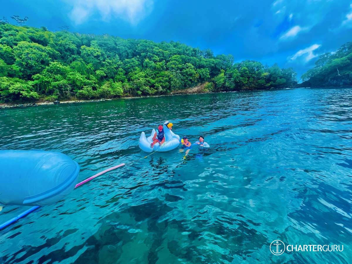 swimming right alongside the boat, snorkeled in crystal-clear waters filled with colorful