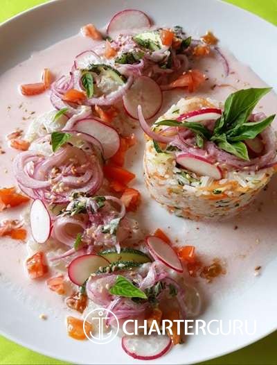 The last 10 years, she has worked as Chef aboard sailing catamarans and motor yachts, private and charters, like M/Y “DON’T ASK” 75’, M/Y” H” 137’, or M/Y “A PASSIONATTA” or M/Y LAURAYANN in the Mediterranean including the French Riviera.