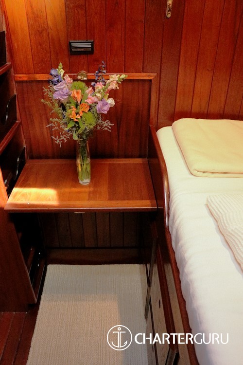 Accommodations: SY Tree of Life Sleeps 6 guests in 3 cabins:1 Master suite: The Master suite is placed in the stern and provides its occupants with a King bed, plenty of wardrobe space. The King size bed that can be split down the middle for two singles, and an en-suite bathroom with a sink, toilet and shower.