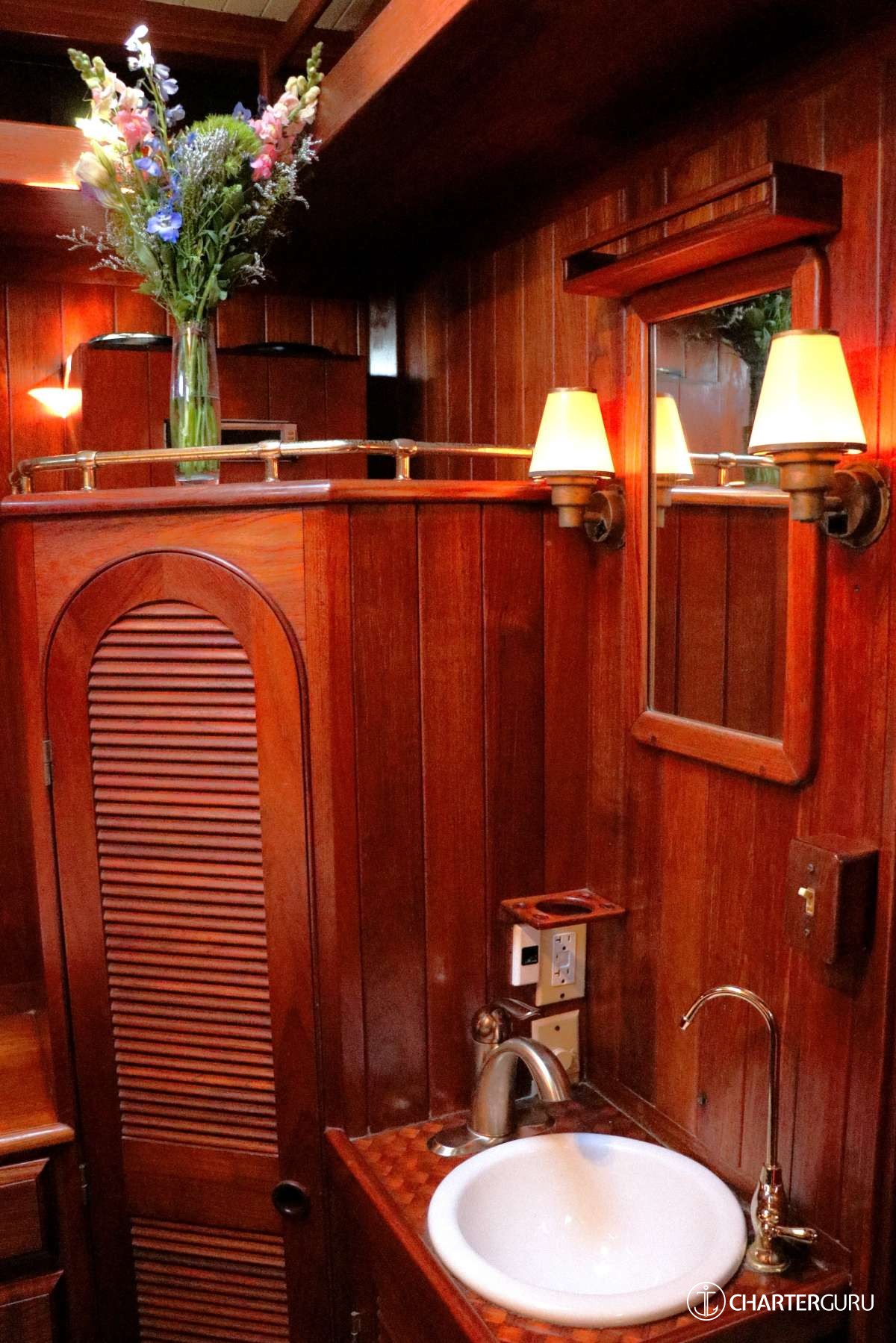 The two brand new Douglas fir Masts are impressive, with all new leatherwork, and attention to detail is everywhere, from luxurious bathrobes in each cabin, hand crafted flower vases to replace the outdated 'phone cubbies' previously in place (with fresh flowers always aboard), and brass lanterns hung on deck each evening.
