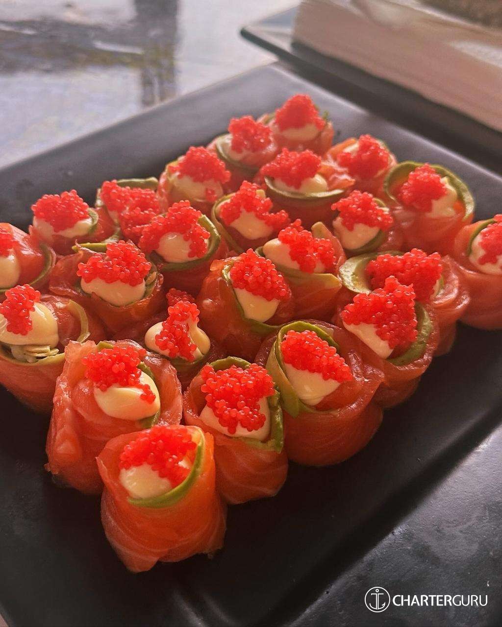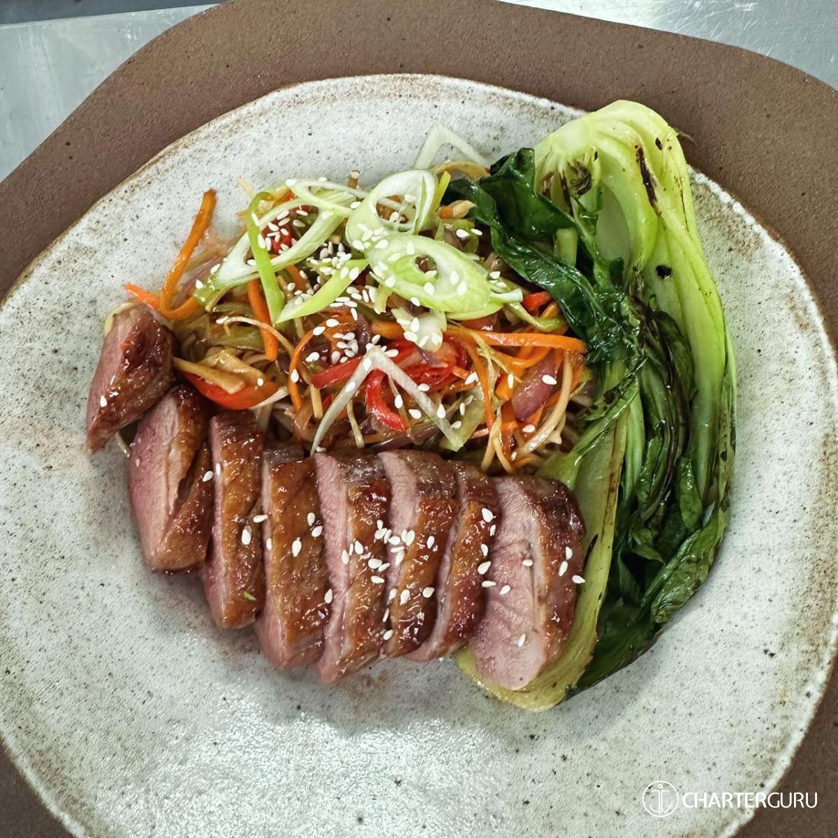 Julie’s culinary style is elegant yet approachable — effortlessly blending vibrant flavors, colorful presentation, and guest preferences into beautifully balanced meals. From island-inspired lunches and bright, wholesome breakfast bowls to romantic dinners under the stars, her menus are tailored to suit the rhythm of each day on board. Guests often rave about her creative flair, light touch, and ability to make each meal feel like a moment worth savoring.